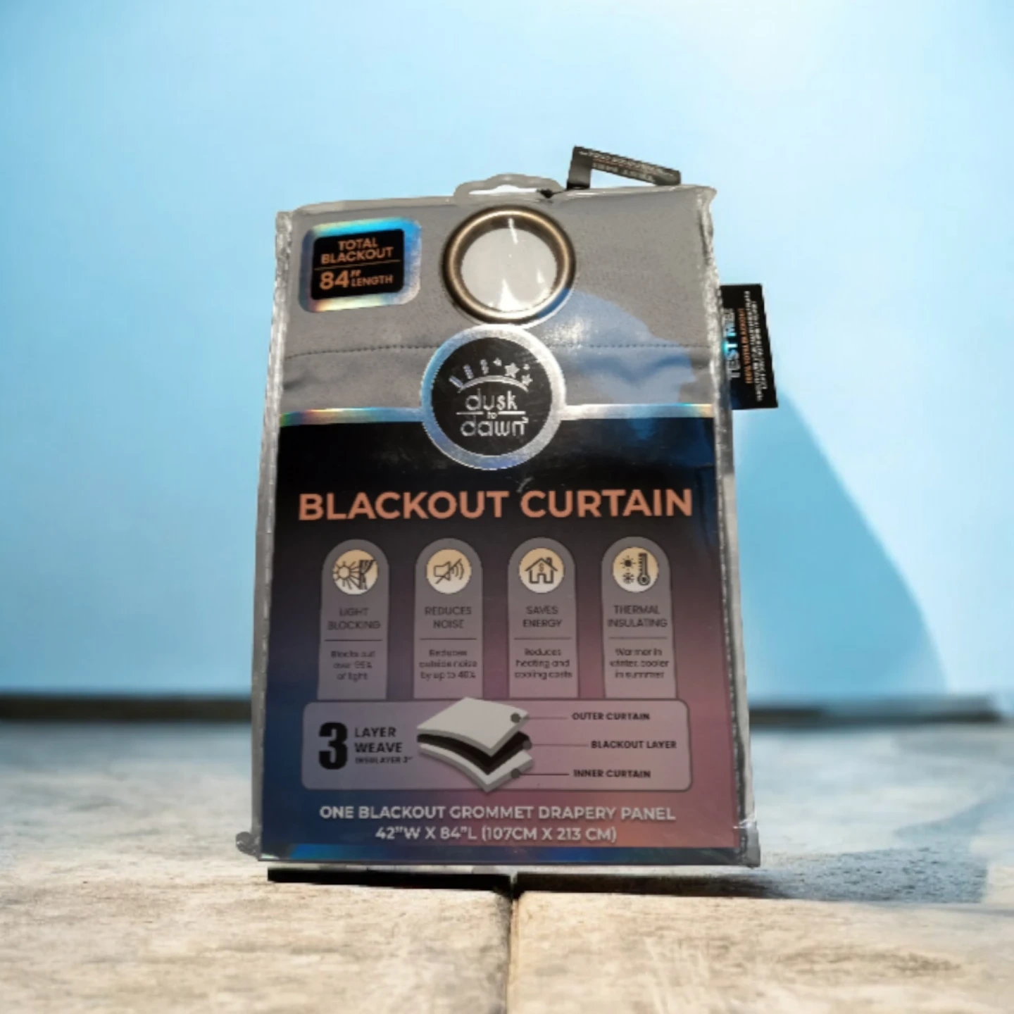 Selling a set of Dusk & Dawn blackout curtains. They are 42" x 84" in size. These curtains block out over 99% of light, reduce noise by up to 40%, save energy, and are thermal insulating. They feature a 3-layer weave.