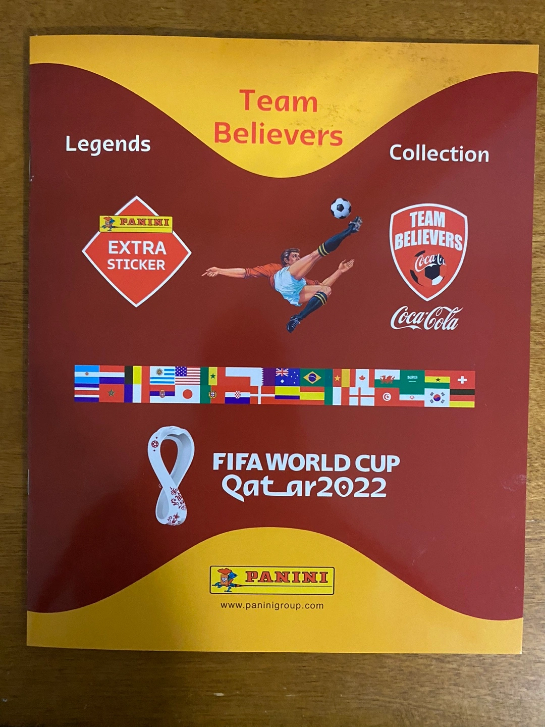 Album Team Believers Legends collection. Includes legends, base, bronze, silver, and gold stickers. From FIFA World Cup 2022.