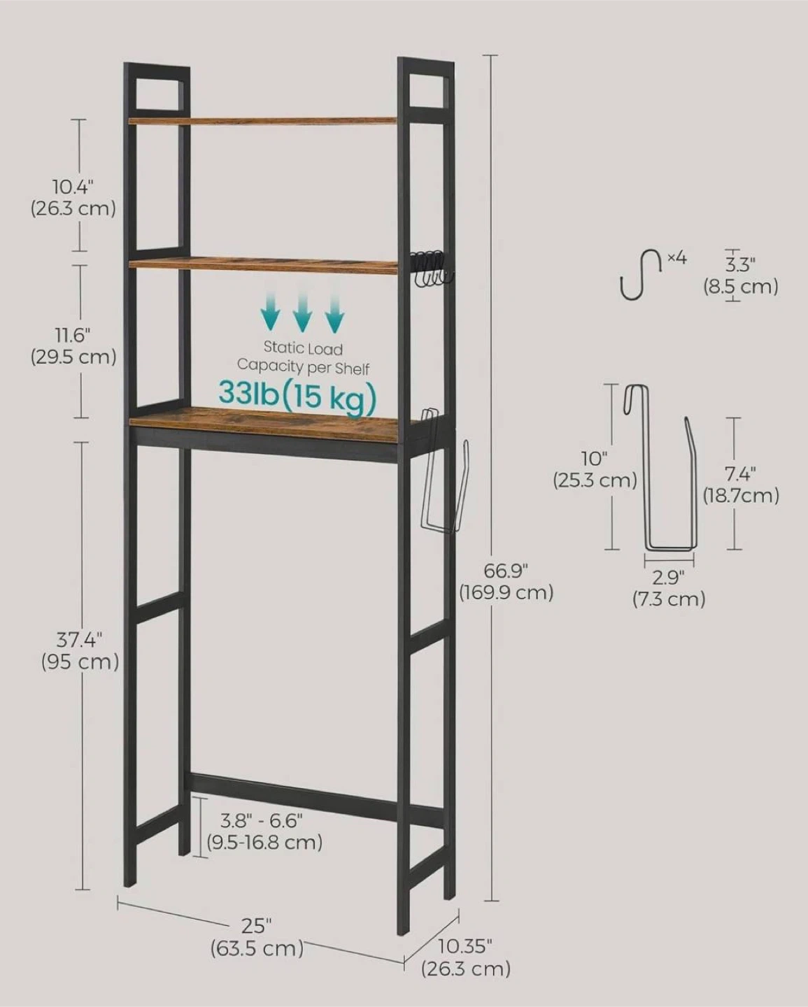 Over-the-Toilet Storage Shelf Unit with Hooks