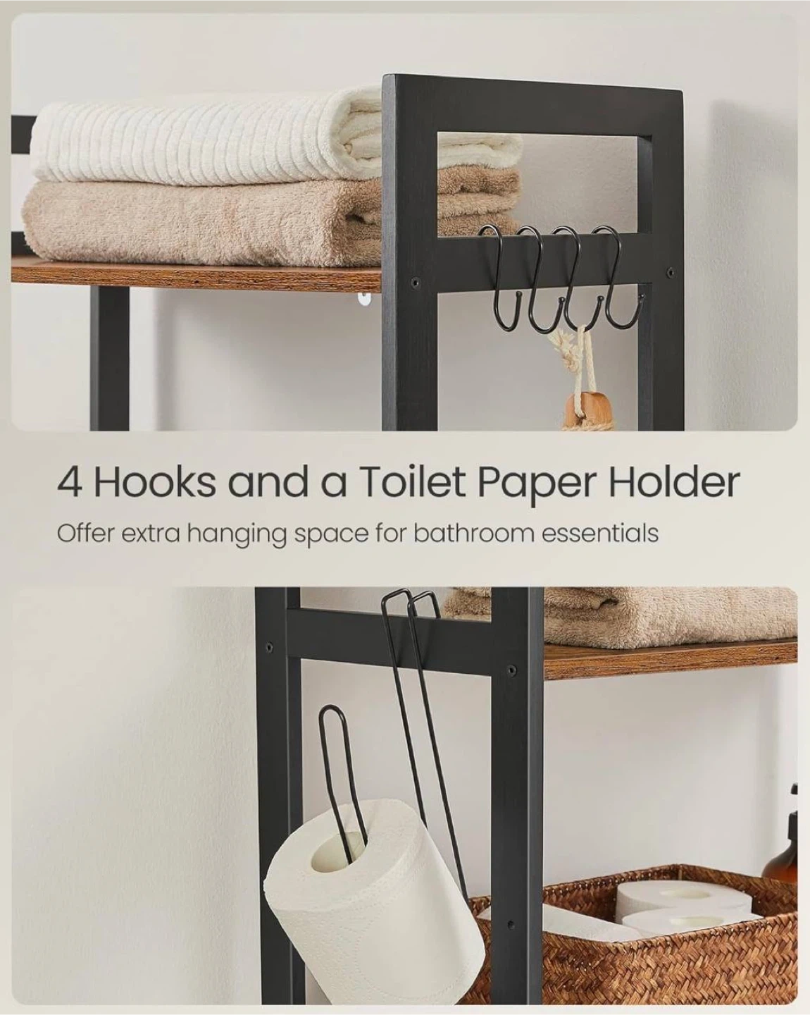 Upgrade your bathroom storage without drilling or wall damage. This SONGMICS over-the-toilet organizer is a stylish and practical space saver, perfect for small bathrooms.