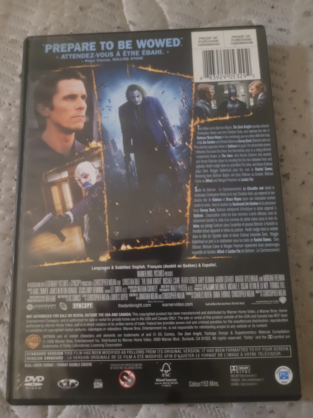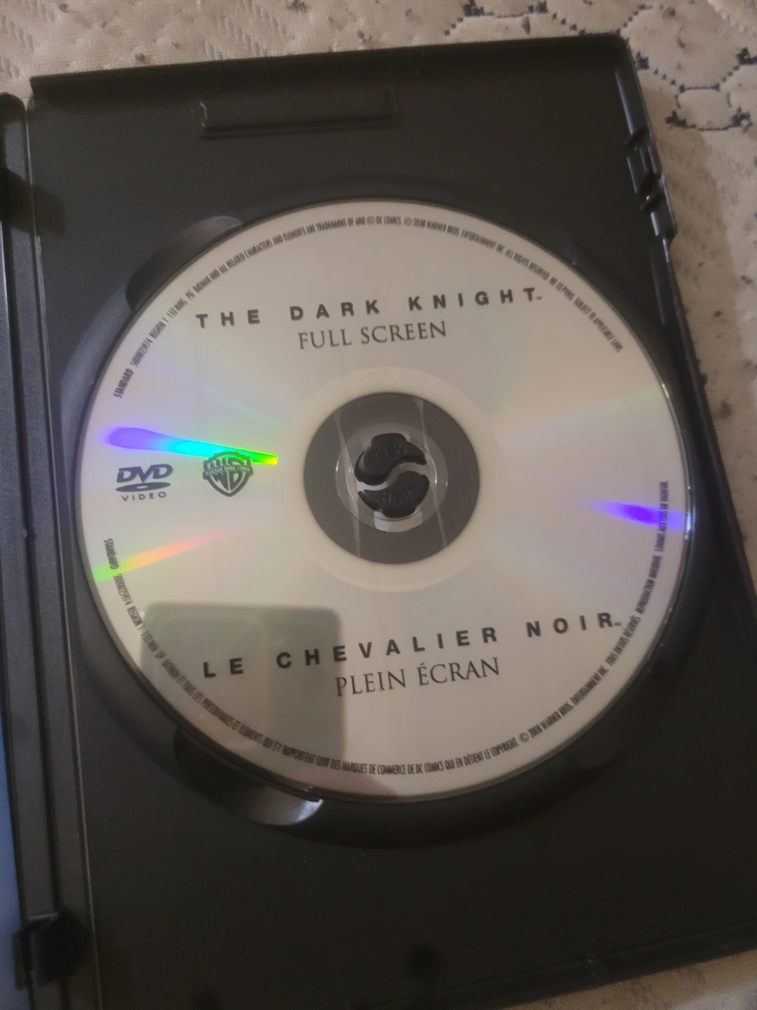 This is the Full Screen Edition of The Dark Knight on DVD. It includes both English and French audio and subtitles. Running time is 153 minutes. Dm me for location cash or etransfer only pick up only