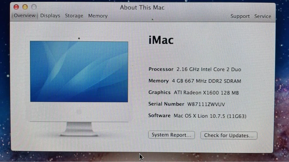 Older iMac 5,1 with 20” monitor, keyboard, and mouse. Works well. Upgraded to 4GB new memory and a 250GB hard drive. Has various older Adobe applications installed (PS, Adobe Illustrator, Adobe InDesign, Adobe Bridge, Adobe Professional). Includes Apple Airport external WiFi Router with 2TB storage.