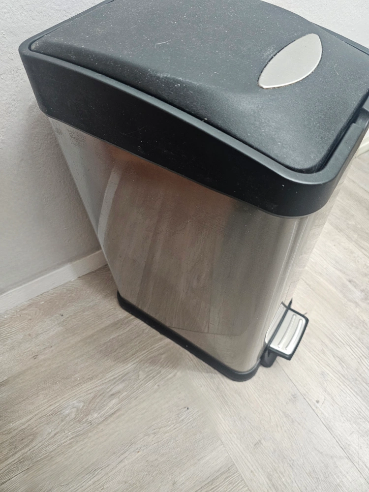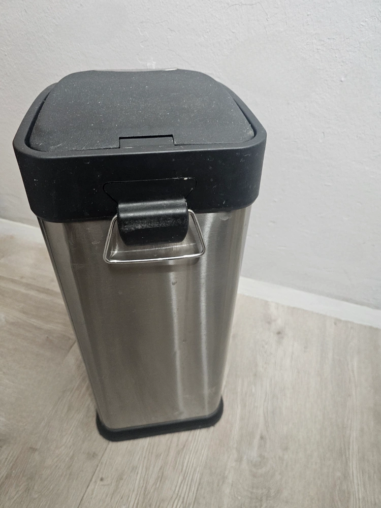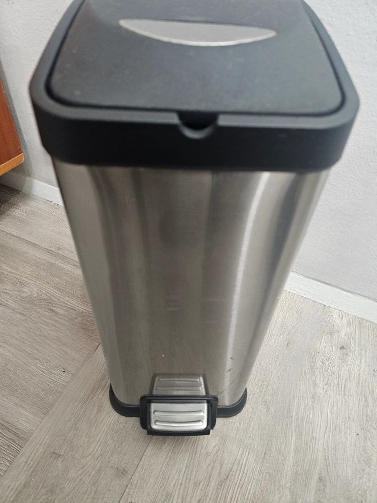 Step on trash can. Stainless steel body. Black plastic lid basket. Foot pedal operation. Pre-owned in good condition, other then inside has some rust from using beach from regular cleanings overtime. Which you don't see with the inner basket in. Some minor normal wear. Otherwise all good!