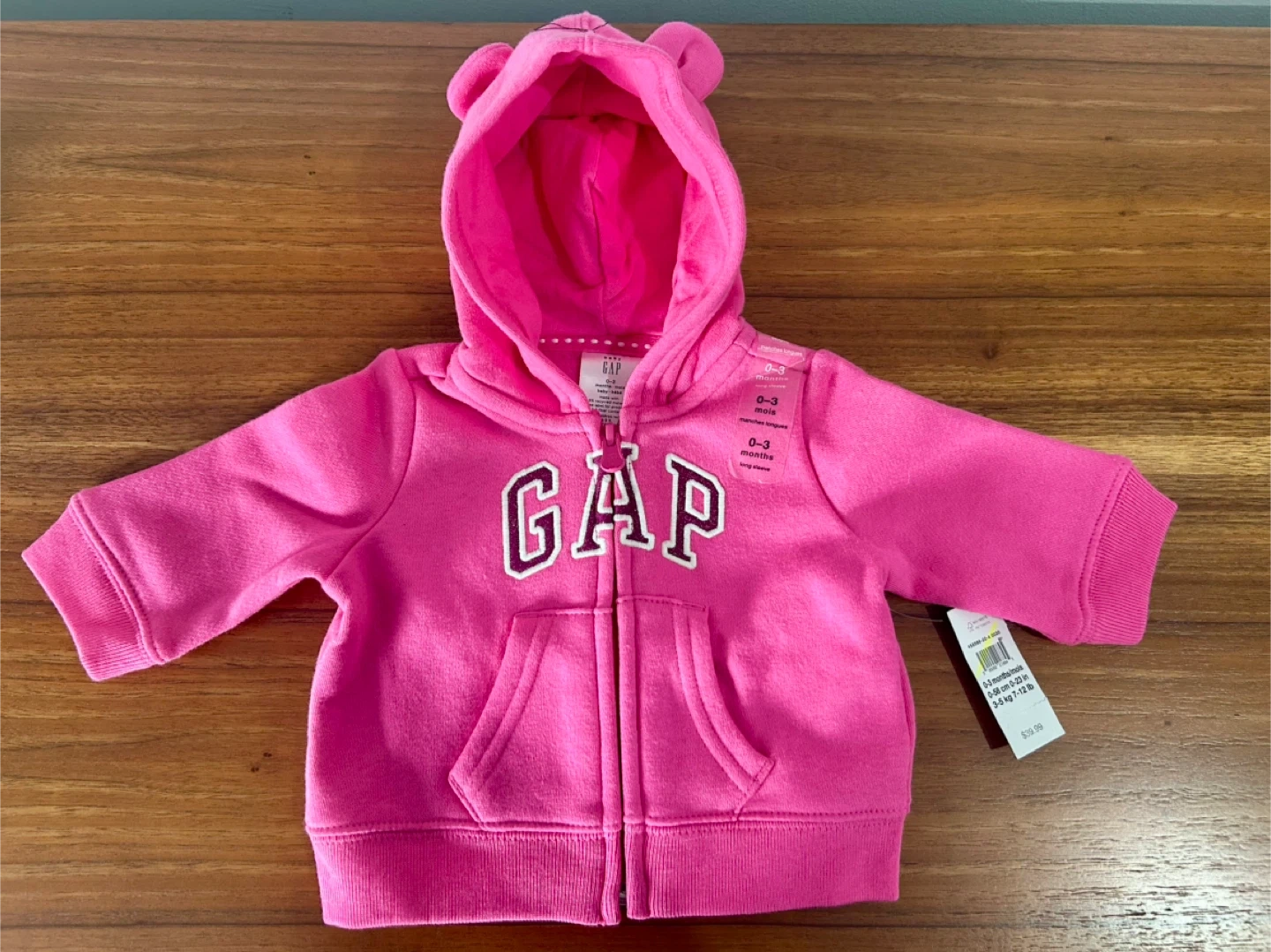 • Pink GAP zip-up hoodie with cute bunny ears (super soft and cozy)