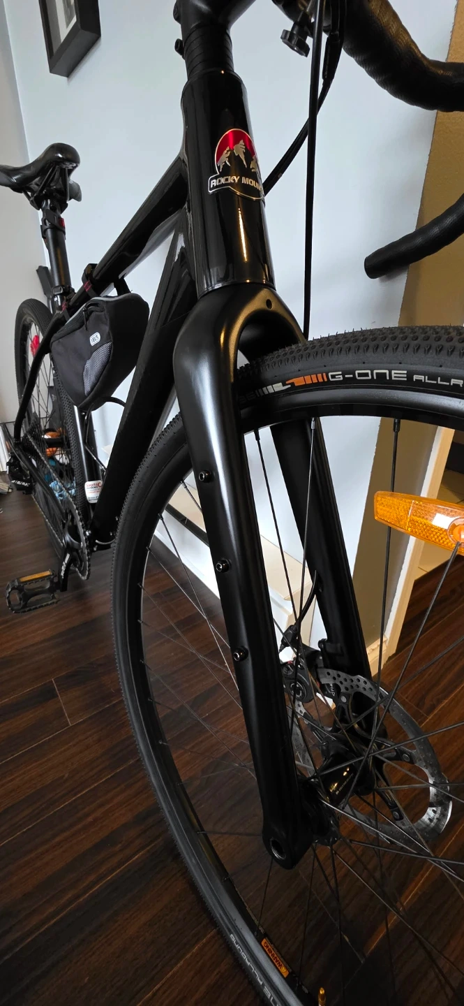 Barely used like new Rocky mountain solo gravel bike in black. Size small. 700x38c Schwalbe g-one. 1x11 speed sram apex groupset with mechanical disc brakes and carbon fork. Stored indoors for as long as I've had it. I'm the original owner.
