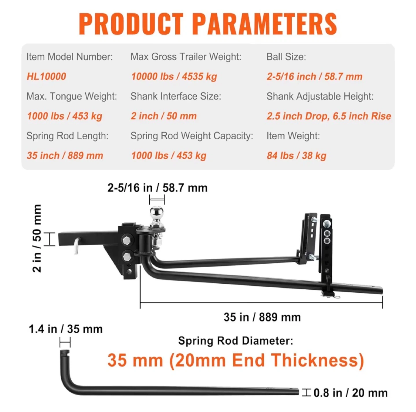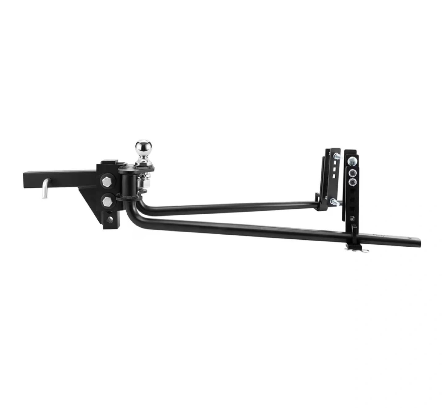 I'm selling a VEVOR weight distribution hitch! It's made of durable steel material for unwavering stability and reliable usage. It features excellent wear and corrosion resistance with a straight plate design for enhanced sturdiness. The hitch includes a high-strength steel spring rod and an alloy steel ball rated for 1000 lbs, along with 4-point swivel control
