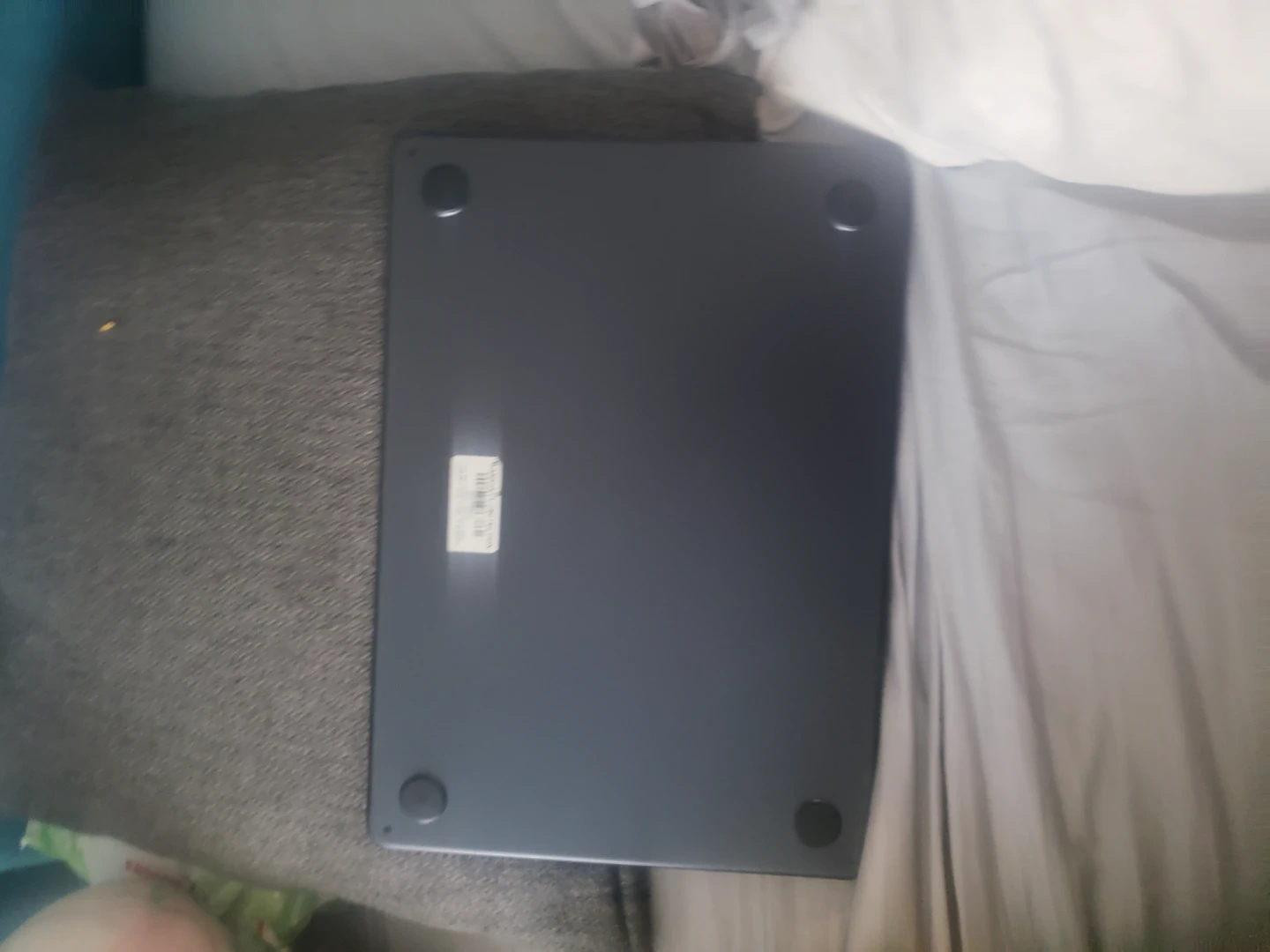 This is a dark grey Apple MacBook laptop. It's a sleek and powerful device for everyday tasks. The compact design makes it easy to carry around.
