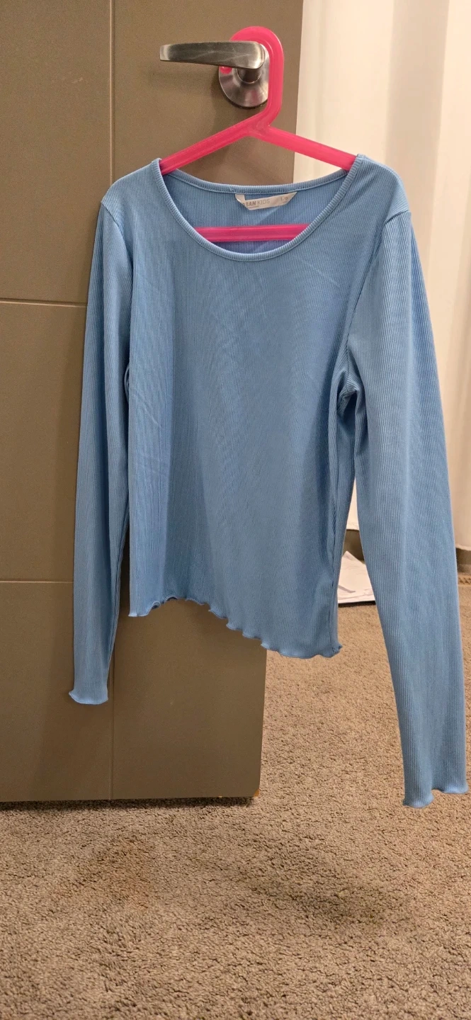 Selling a variety of clothing items including a Tommy Hilfiger hoodie, a light blue long-sleeve shirt, a pink bodysuit, and a green cardigan. All in great condition and ready for a new home!