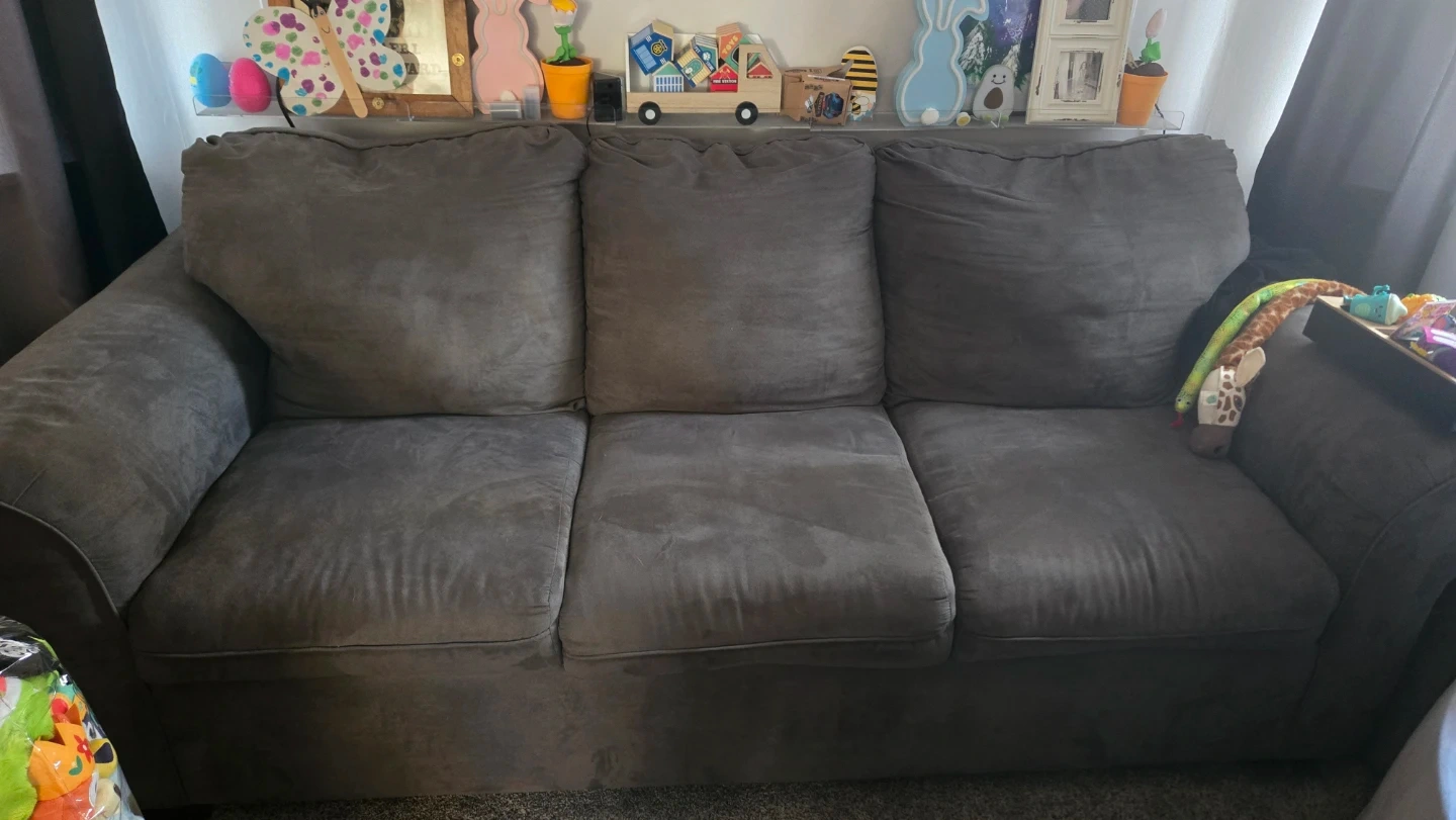 Buy & SellGray Suede SofaGray Suede Sofa$225This is a comfortable gray suede sofa. It's a three-seater with plush cushions. The material is soft and durable.ÉtatLike newWHERE TO MEETCheck LocationView MapSELLERHeatherFarmingville100 reviews0 chats·0 favorites·36 viewsSEND CHAT TO SELLERHi Heather! I’m interested in your listing.Hi Heather! I’m interested in your listing.Get the Karrot app to chatSign In to chat