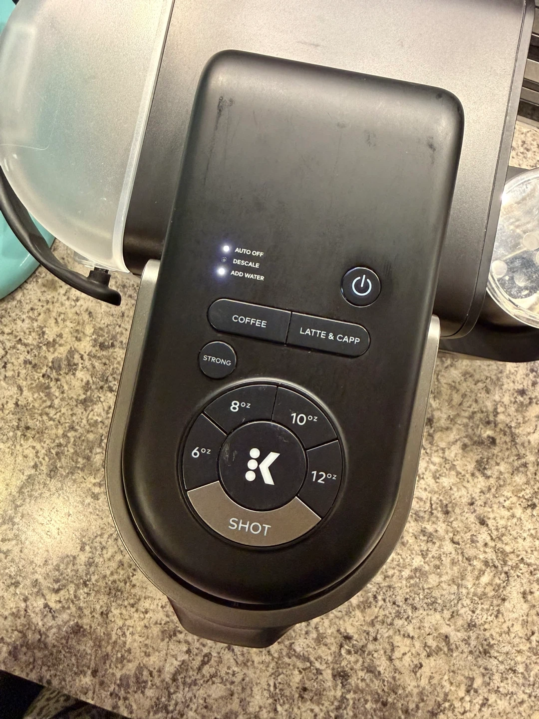 Keurig K-Cafe Special Edition coffee maker with milk frother included. Offers multiple brew sizes: 6oz, 8oz, 10oz, 12oz, and a shot option. Built-in frother for lattes and cappuccinos. Features auto-off, descale, and add water indicators.