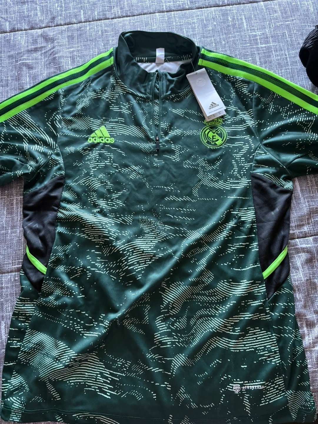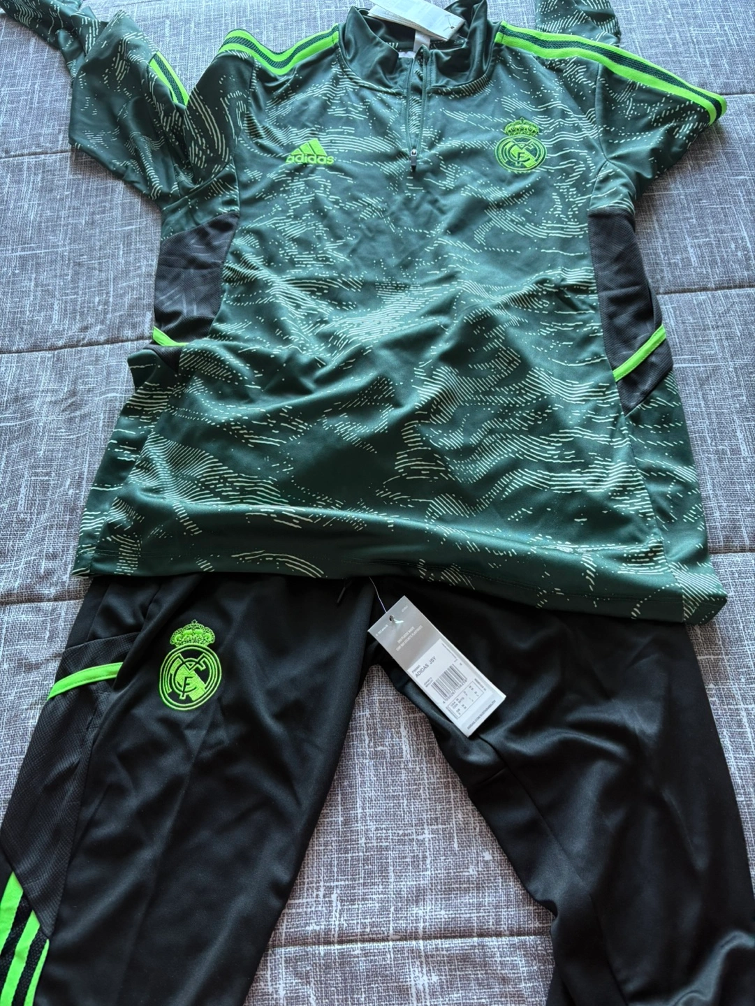 Selling a brand new Adidas Real Madrid training suit! The set includes a training jacket and pants, both in size M. Perfect for any Real Madrid fan or athlete looking for comfortable and stylish training gear. The tags are still attached!
