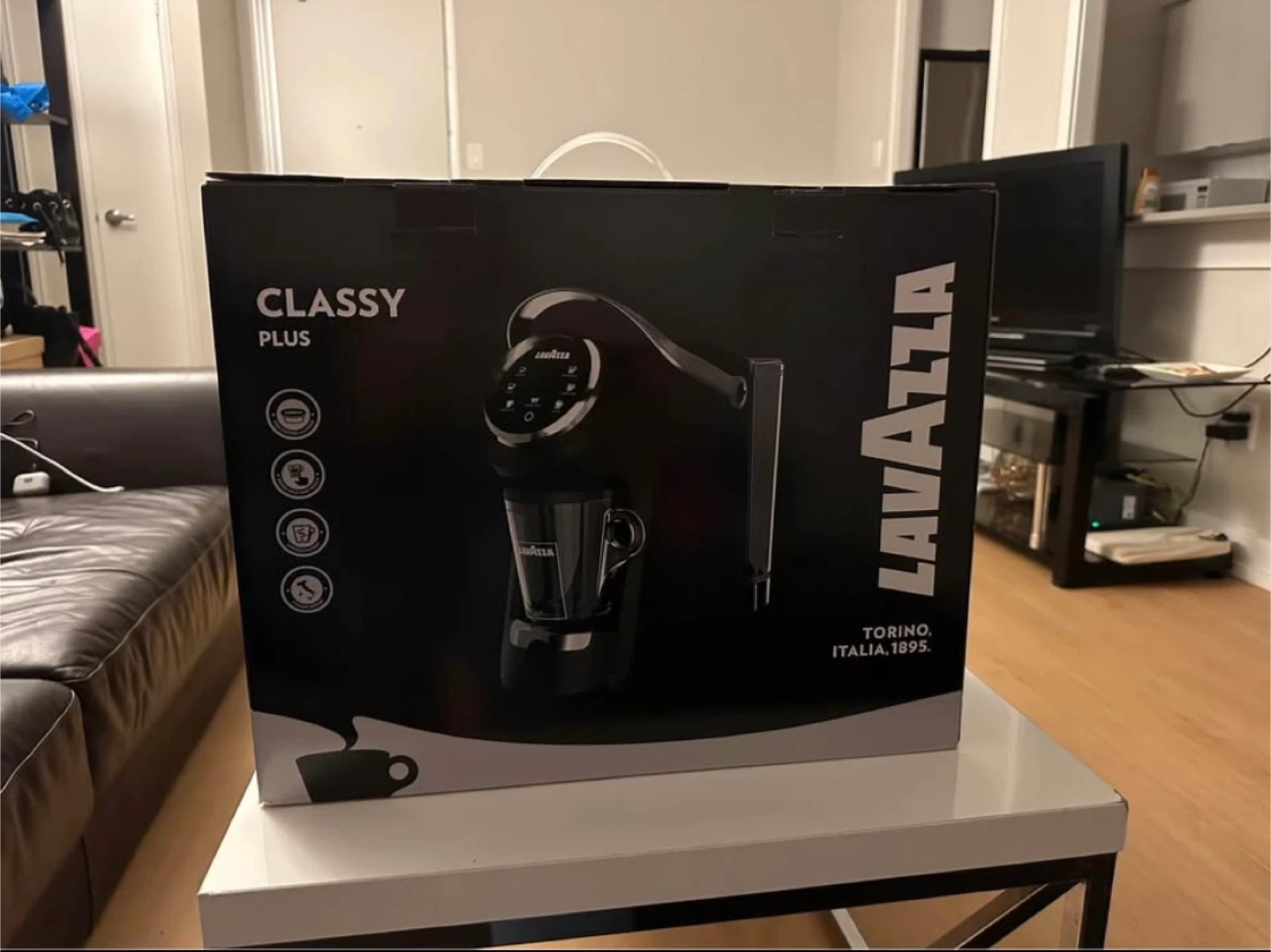 Lavazza Classy Plus coffee machine for making cappuccinos and coffee. It's designed for various spaces and coffee needs. This machine makes 8 oz drinks with just a touch!
