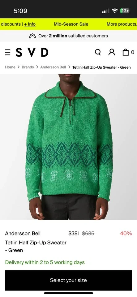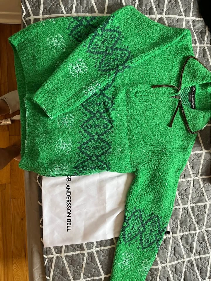 1 / 51 / 5Buy & SellAndersson Bell Tetlin Half Zip-Up Sweater - GreenAndersson Bell Tetlin Half Zip-Up Sweater - Green$140I bought this in Korea for $600 and am selling it for $230 to sell it quick. Worn once. Great condition.WHERE TO MEETCheck LocationView MapSELLERverifiedMoonDanforth600 reviews0 chats·0 favorites·12 viewsSEND CHAT TO SELLERHi Moon! I’m interested in your listing.Hi Moon! I’m interested in your listing.Get the Karrot app to chatSign In to chat