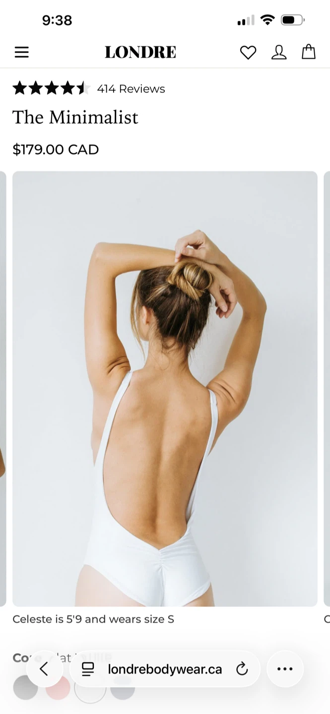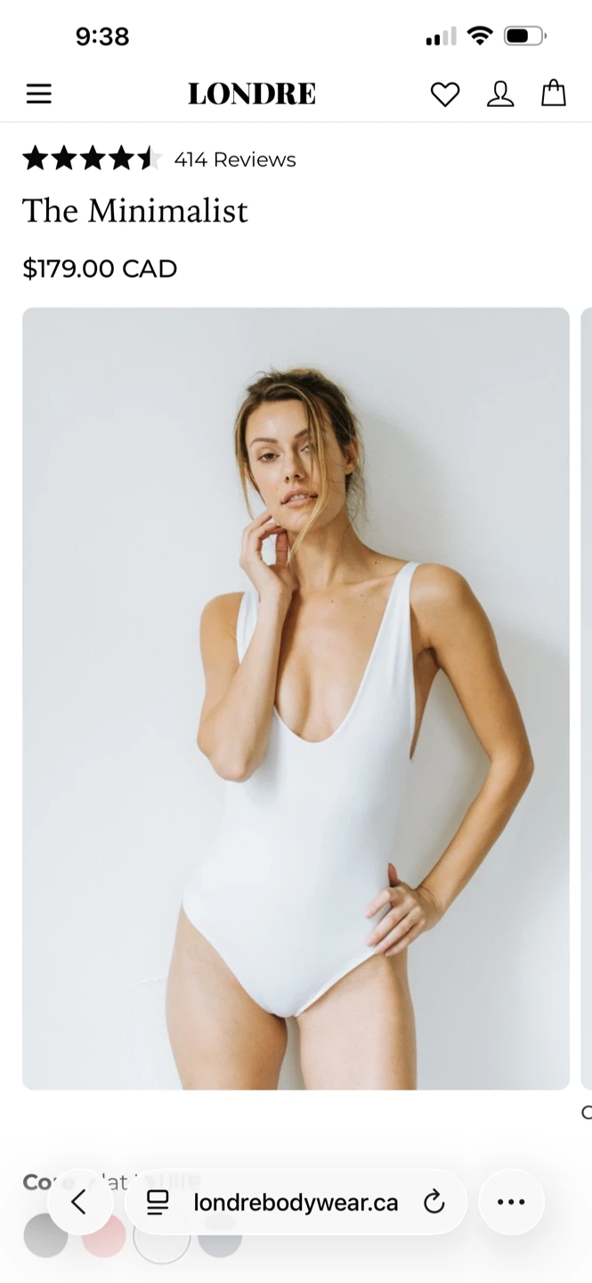This is LONDRE's 'The Minimalist' one-piece swimsuit. It features a deep scoop neckline and an open back. Material is a ribbed blend for a comfortable fit. New with tags, size XXL.