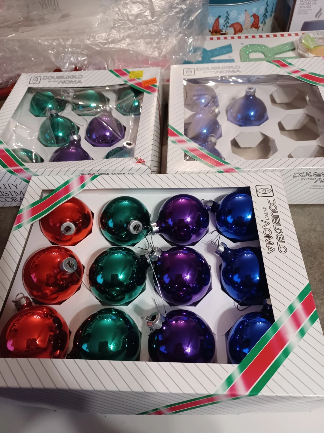 Selling a set of Double Glo by Noma Christmas ornaments. The set includes a variety of colours including red, green, purple, and blue. They are in excellent condition and ready to decorate your tree! 4 missing as they broke.