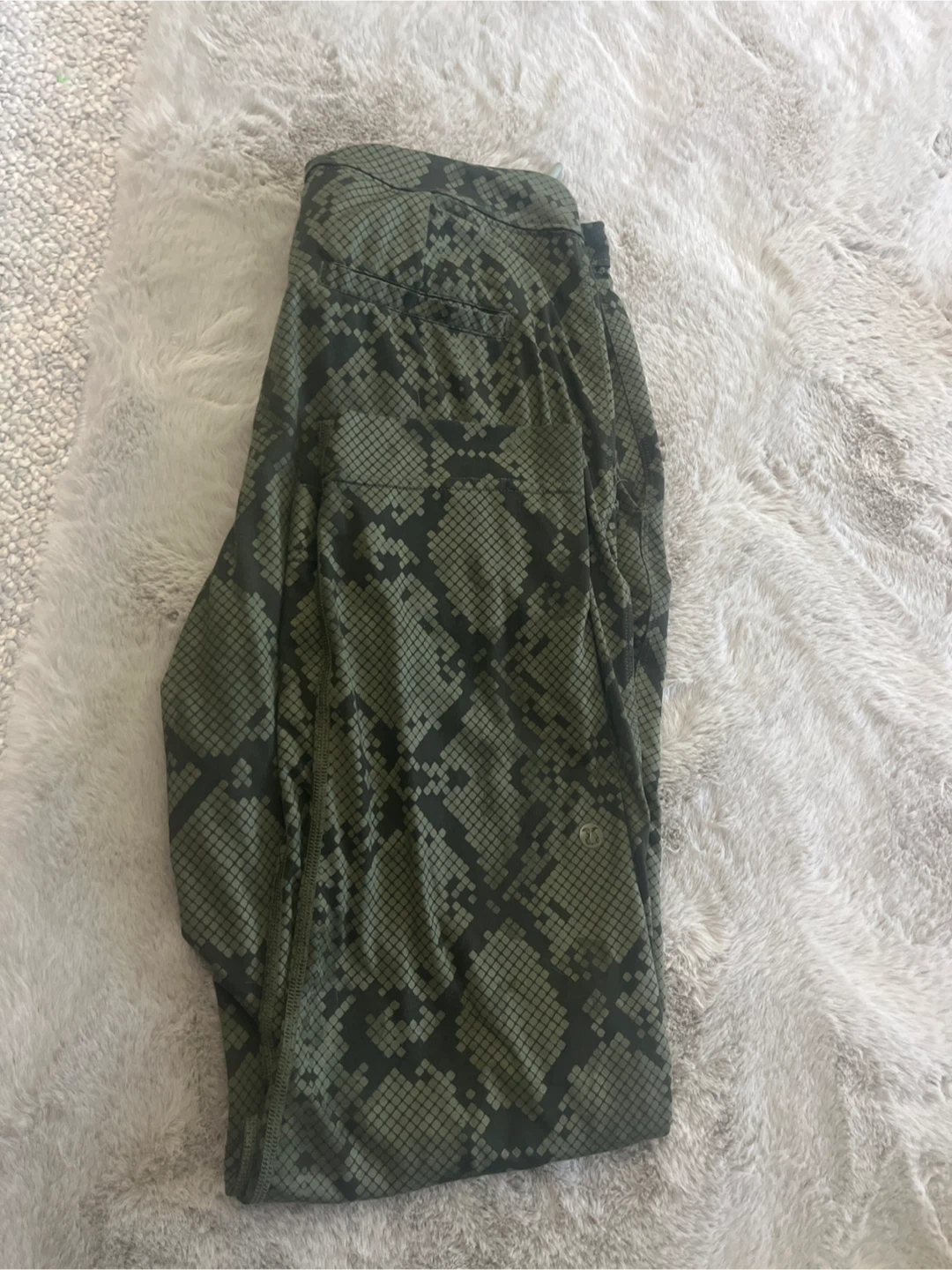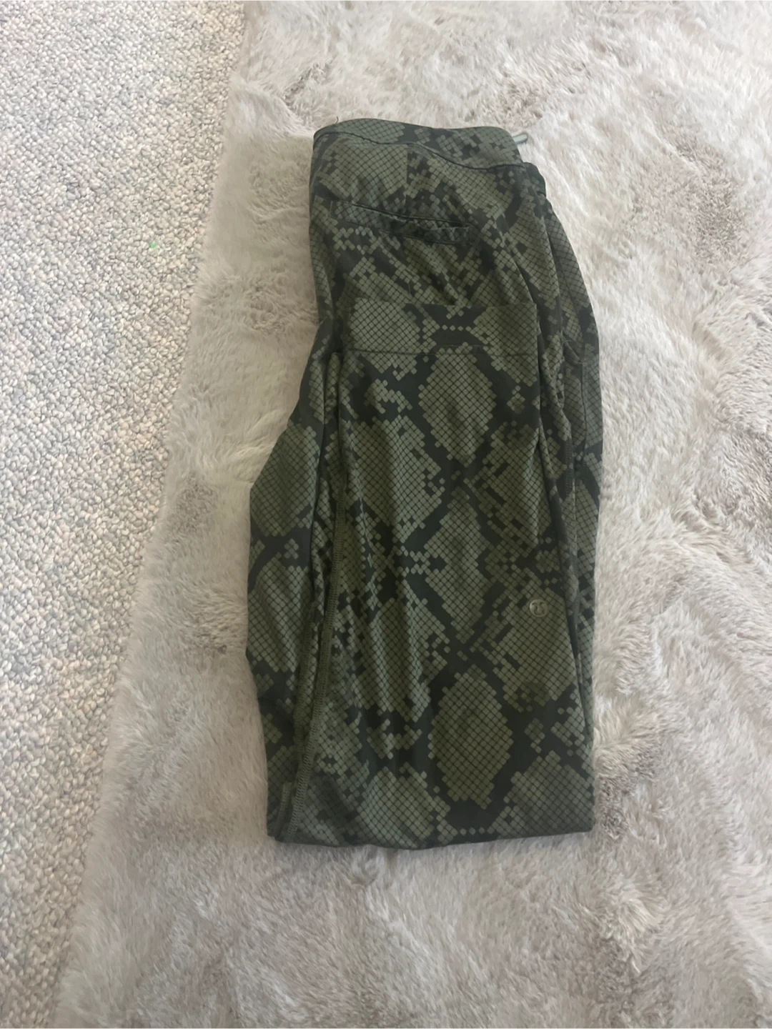 Lululemon leggings in a green snake print. Features a comfortable and flexible fabric. Perfect for workouts or casual wear! Pick up cash only