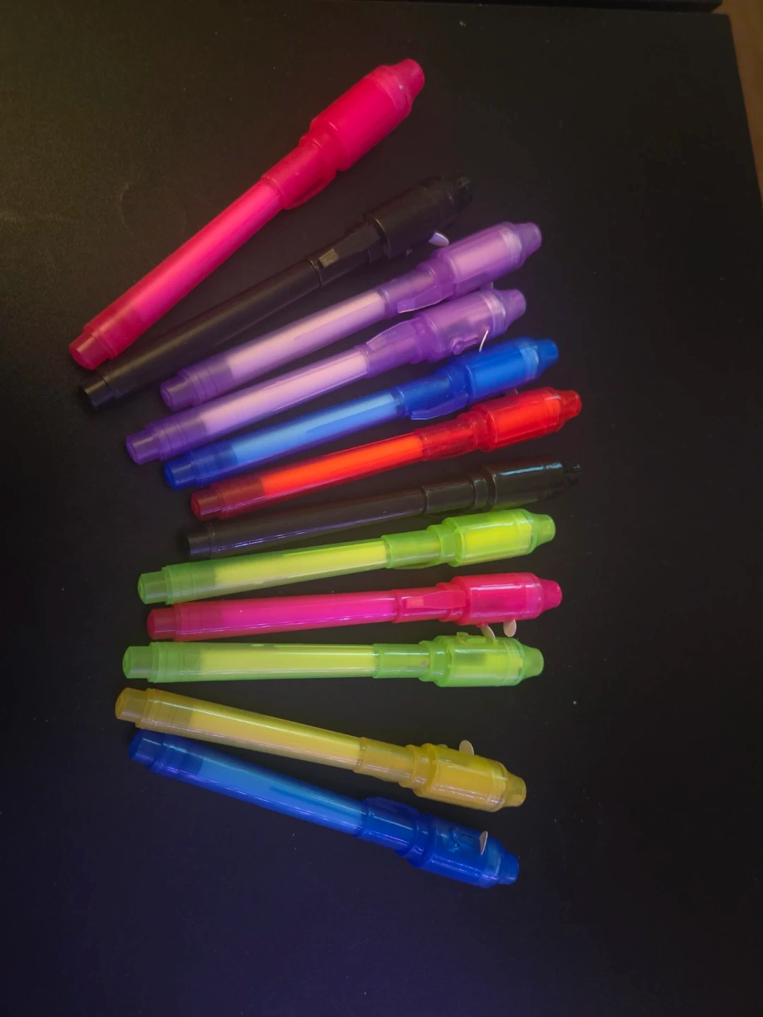 Get this fun set of invisible ink pens! Each pen comes with its own built-in UV light, perfect for writing secret messages, self studying or mystery games for kids!