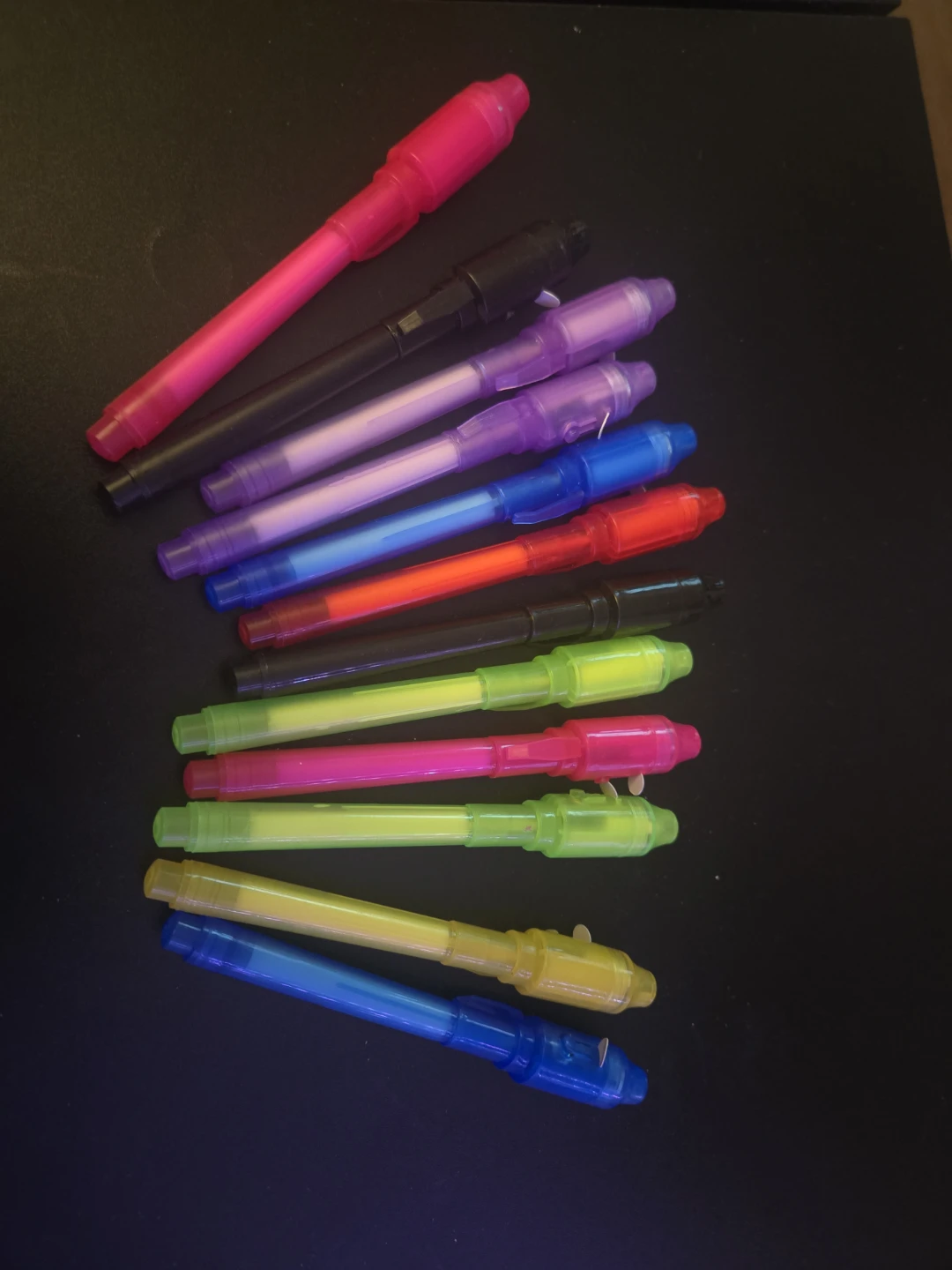 Get this fun set of invisible ink pens! Each pen comes with its own built-in UV light, perfect for writing secret messages, self studying or mystery games for kids!
