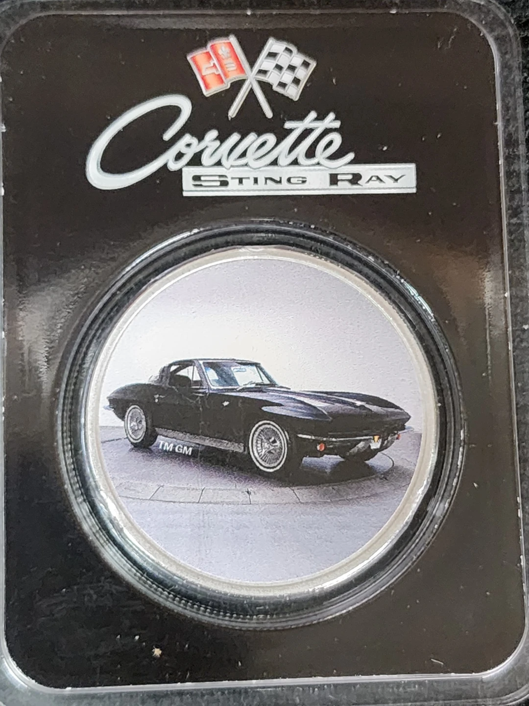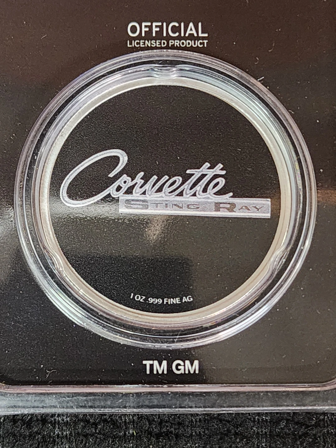 Selling a Corvette Sting Ray 1oz .999 fine silver coin. It's in great condition and features the classic Corvette design. A must-have for any car enthusiast or coin collector