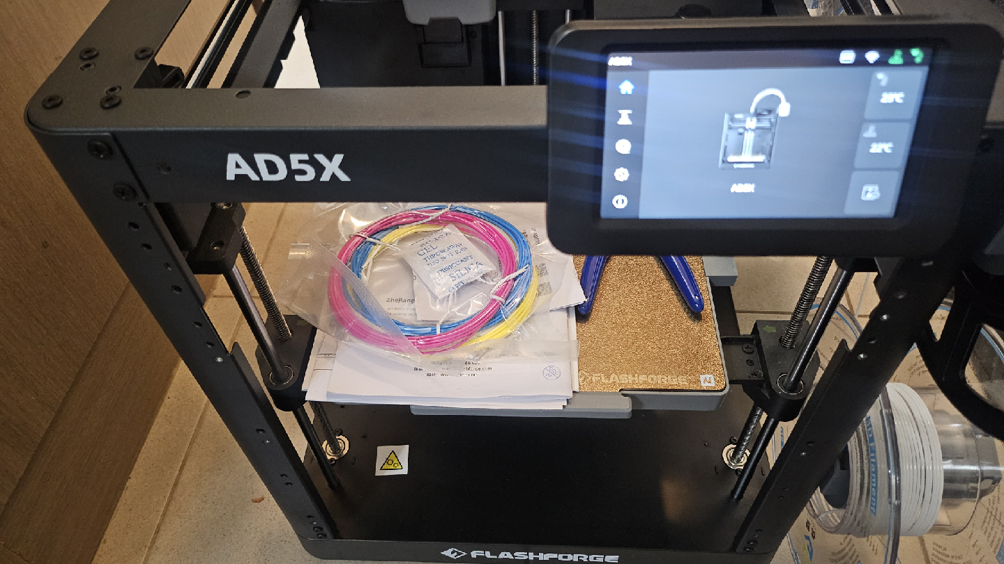 I'm selling a Flashforge AD5X multicolour 3D printer, a versatile machine perfect for hobbyists and professionals alike, complete with a DIY enclosure kit to maintain optimal printing conditions. This printer has been lightly used and is in excellent working condition, ready to bring your designs to life with precision and vibrant colours.