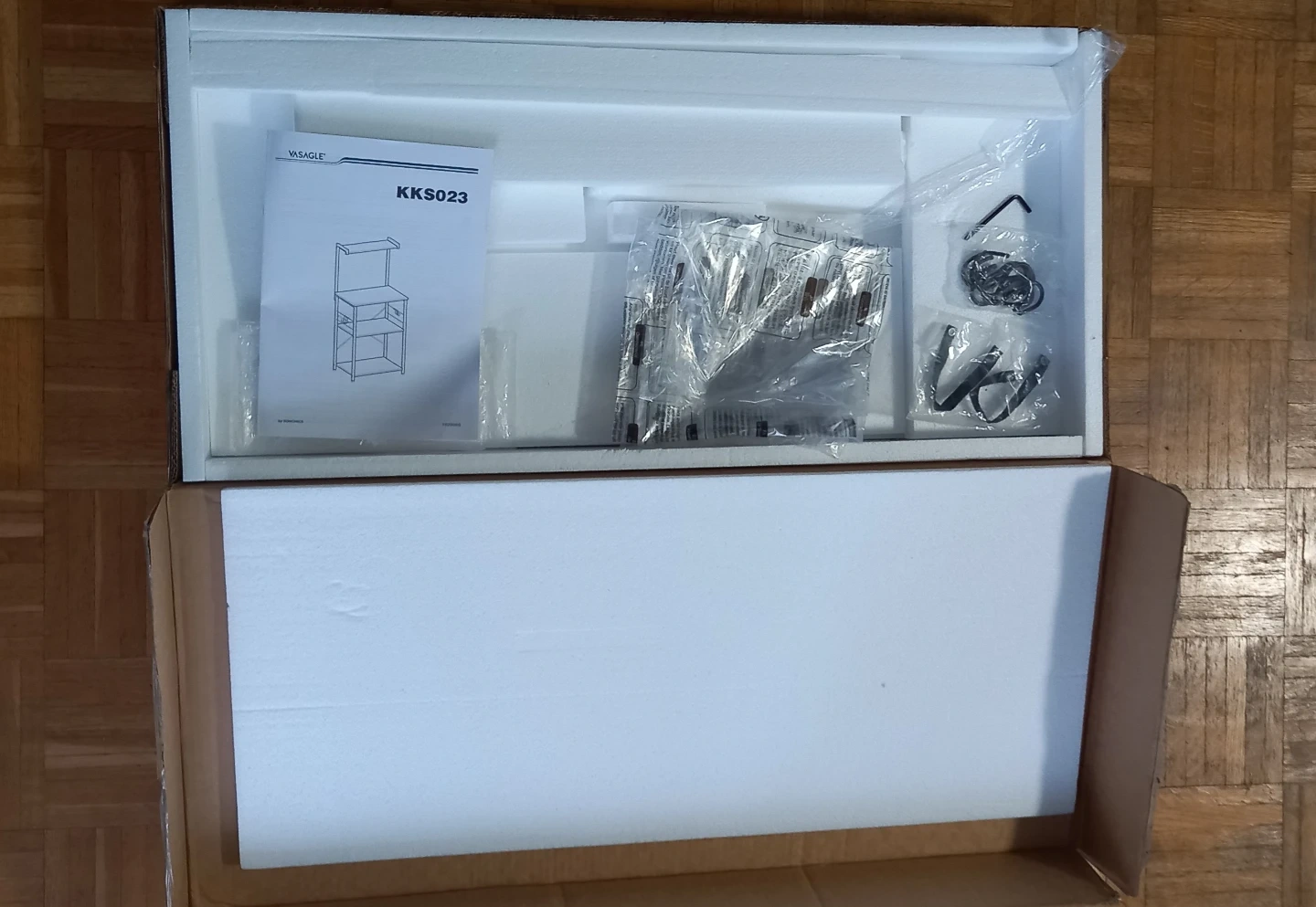 Multipurpose baker's stand is available with its original box, coverings and accessories. Currently in assembled form but can be disassembled and taken away. Pick up only. No delivery.