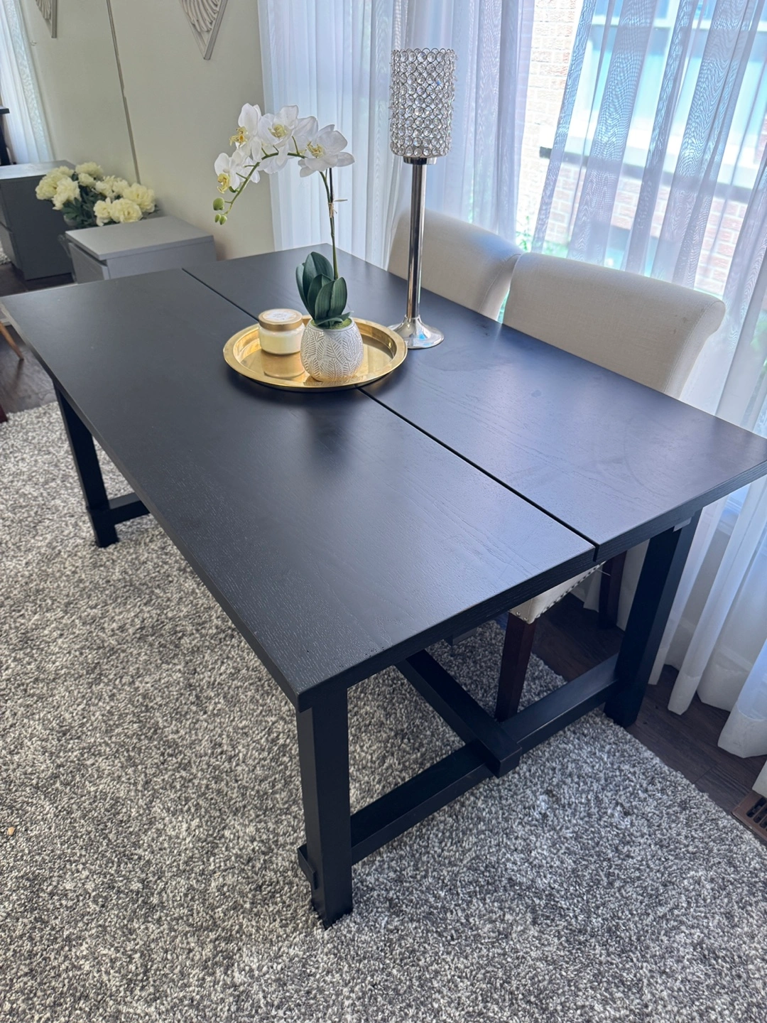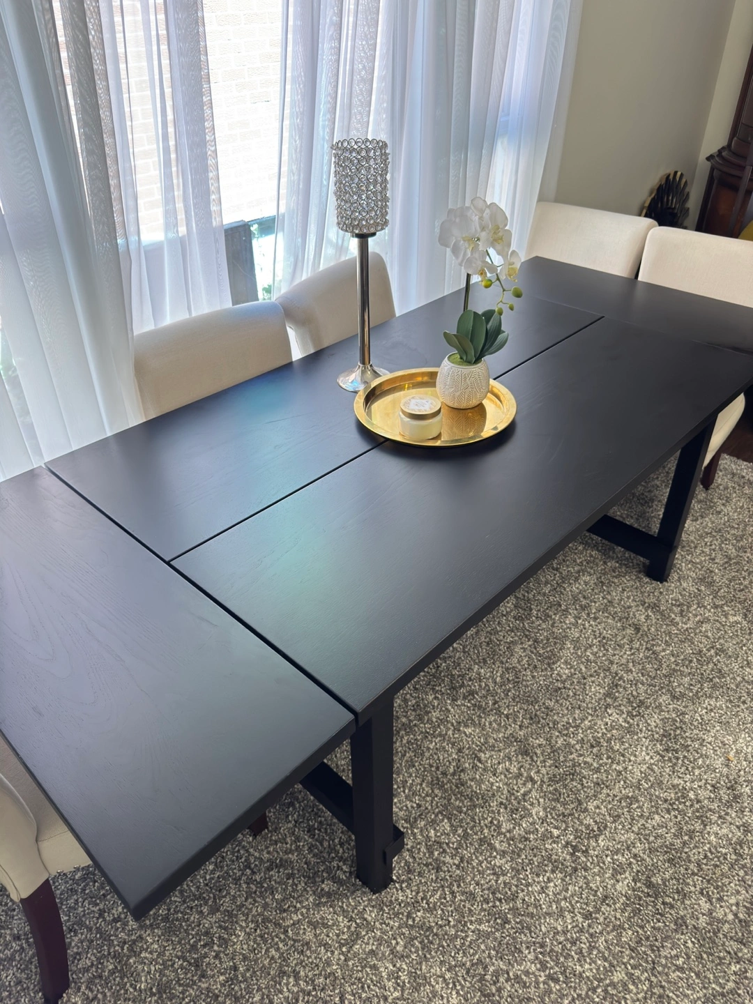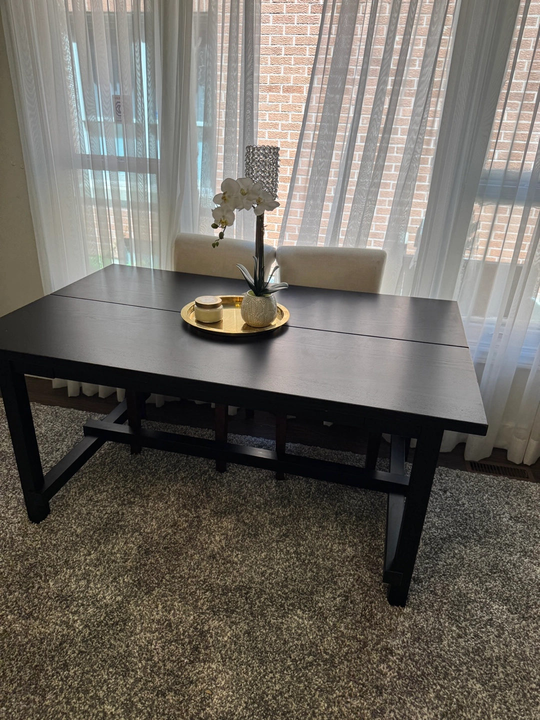 Selling a black IKEA Nordviken extendable dining table. It's in great shape and ready for a new home! The table extends, making it perfect for both everyday use and when you have guests over. It measures 152/223x95 cm (59 7/8/87 3/4x37 3/8 ") when extended. Retails for $649!