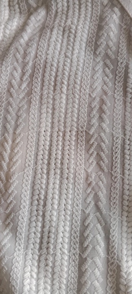 White cotton shalwar kameez. Intricate embroidered detailing. Traditional South Asian clothing. Size 16.