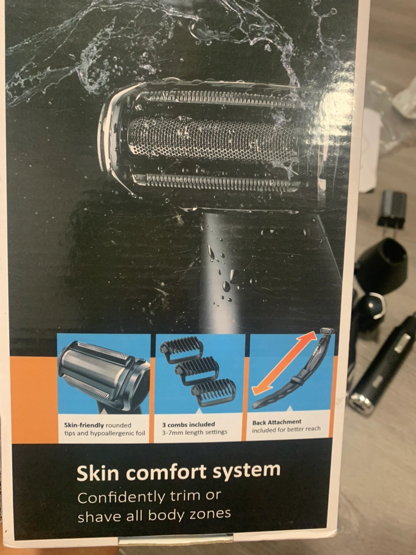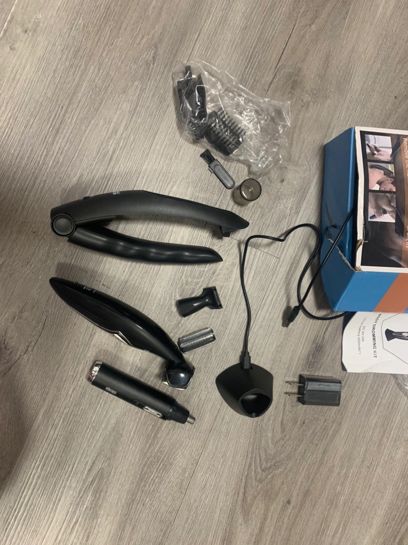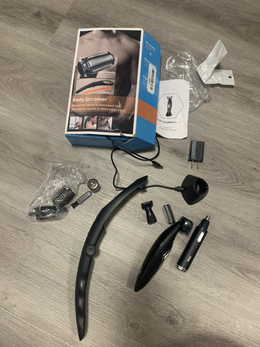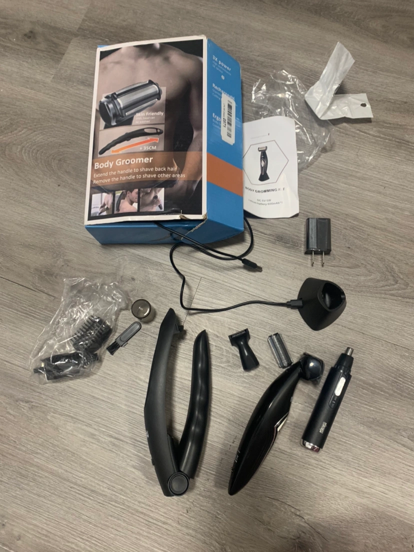 PSP body groomer for sale with multiple attachments, extra blade, nose trimmer, 2 cleaning brush, extension for back grooming, adapter and stand charger. Absolutely New!!
