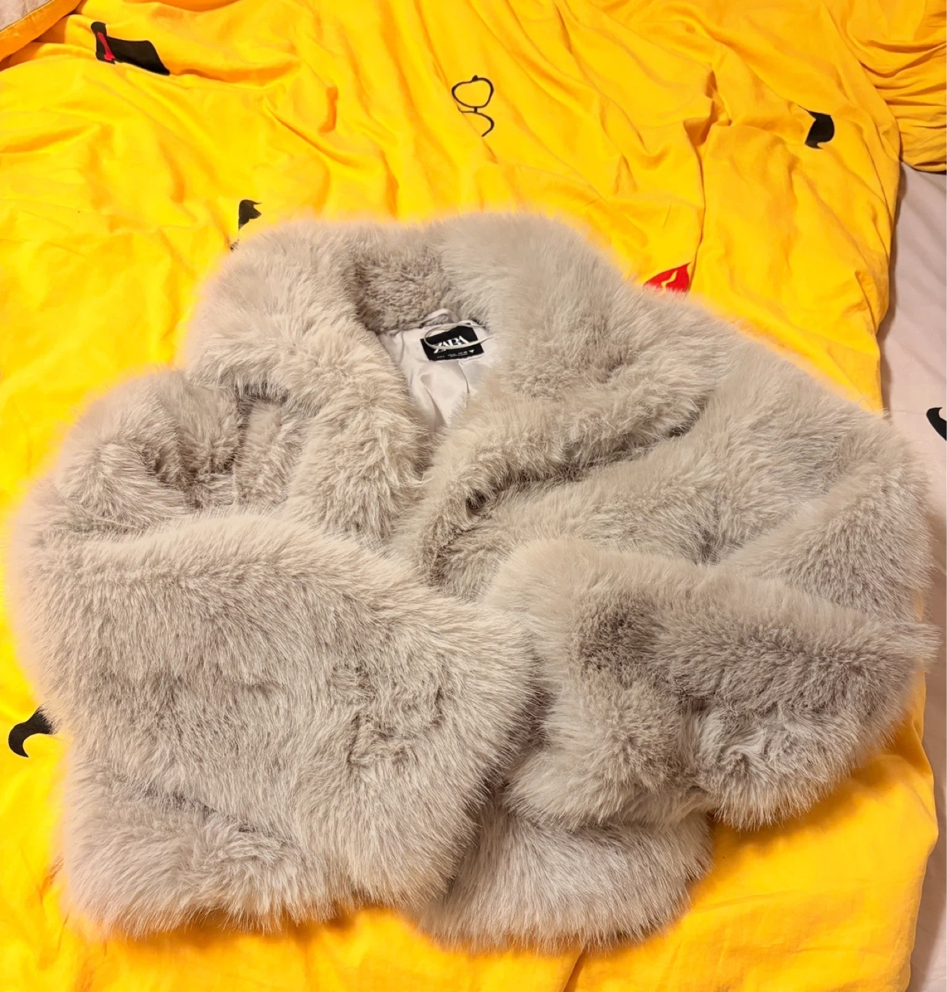 Selling a Zara faux fur coat in a beautiful light grey! It's a size L and is super cozy for the colder weather. Perfect for adding a touch of style to any outfit!