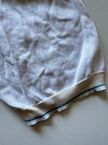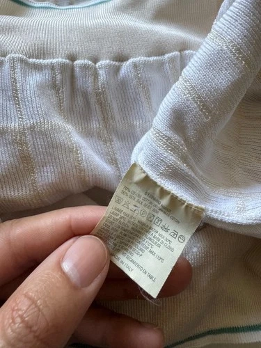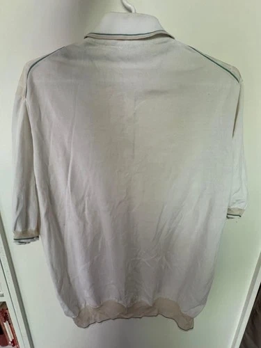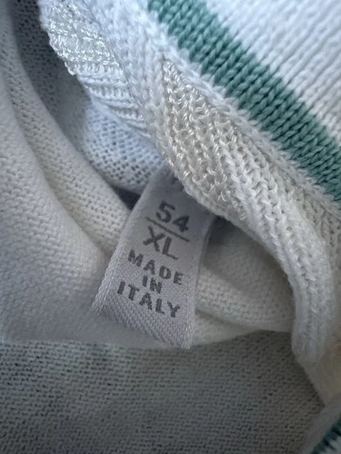 Size: XL 44 US / iT 54 Shoulder to Shoulder: 19 inches / 48.2 cm (Measured shoulder seam to shoulder seam) Chest: ~22 inches / 55.8 cm (Measured armpit to armpit) Sleeve: ~12 inches / 30.4 cm (Measured from the shoulder to the end of the cuff) Length: ~26 inches / 66 cm (Measured back of shirt) Material: 70% Cotton, 30% Silk Any questions, please let me know. Thank you