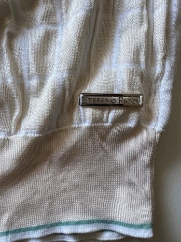 Crafted for the modern gentleman, this Stefano Ricci Polo embodies a timeless aesthetic with its classic geometric pattern and collared neckline. The shirt features a comfortable regular fit in size XL, corresponding to a 44 US and 54 IT, ensuring a generous and flattering silhouette for a variety of body types. The polo is a sophisticated blend of cotton and silk, with a light fabric wash that promotes breathability during wear. Short sleeves make it an ideal choice for warmer days or layering under a blazer. The pure white hue serves as a versatile base for any wardrobe. Measurements:
