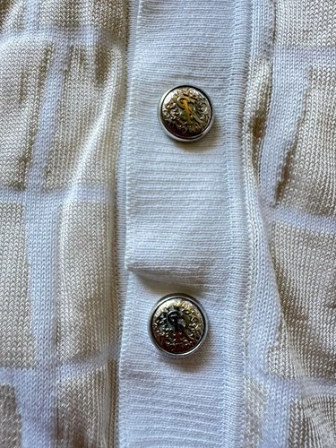 Size: XL 44 US / iT 54 Shoulder to Shoulder: 19 inches / 48.2 cm (Measured shoulder seam to shoulder seam) Chest: ~22 inches / 55.8 cm (Measured armpit to armpit) Sleeve: ~12 inches / 30.4 cm (Measured from the shoulder to the end of the cuff) Length: ~26 inches / 66 cm (Measured back of shirt) Material: 70% Cotton, 30% Silk Any questions, please let me know. Thank you