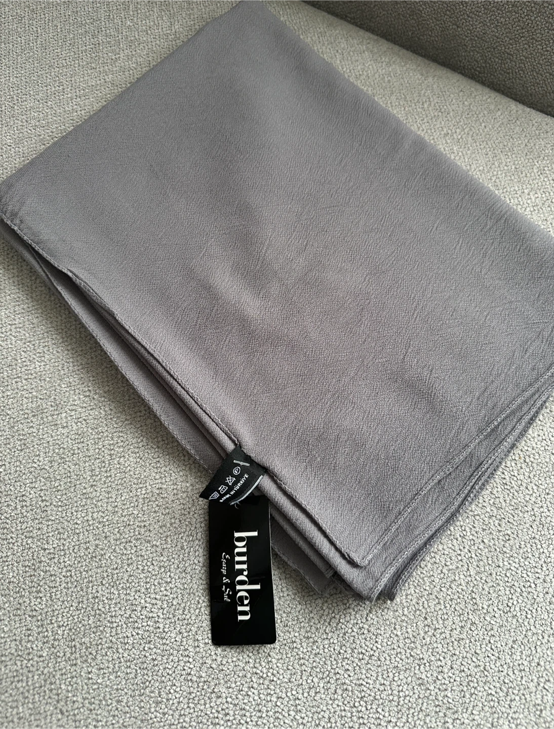 This is a Burden brand scarf in a grey colour. It's made from a soft fabric. This scarf is versatile for everyday wear.