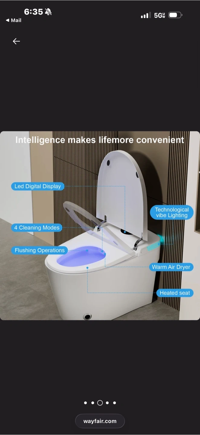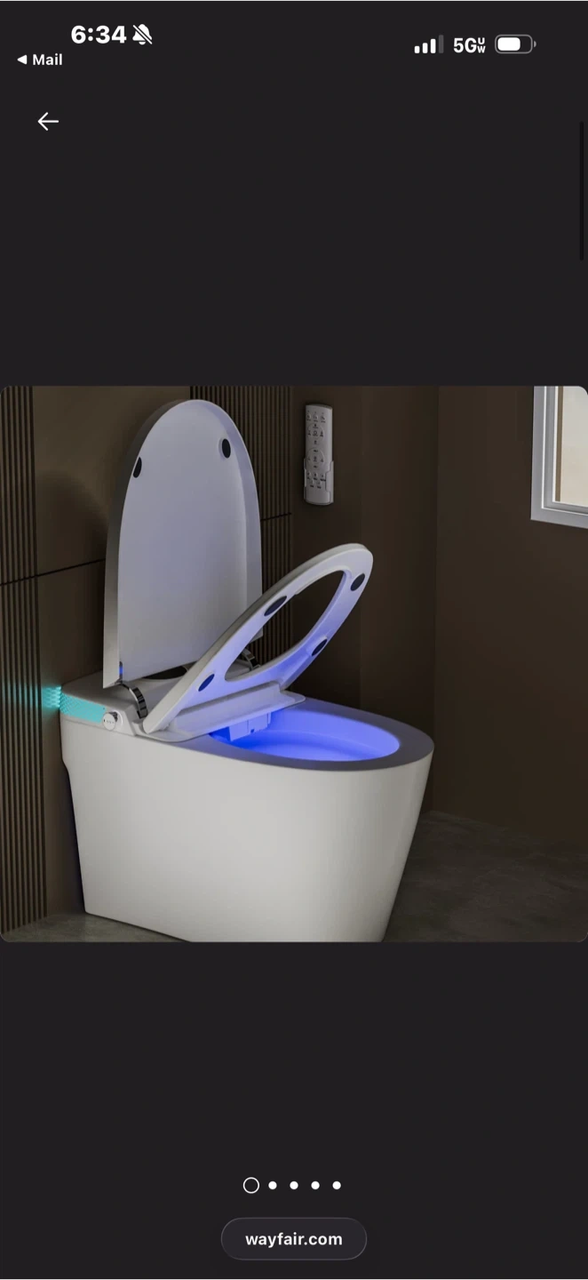 This is a smart bidet toilet seat. It features a warm air dryer, heated seat, and multiple cleaning modes. Includes a LED digital display and a remote control.