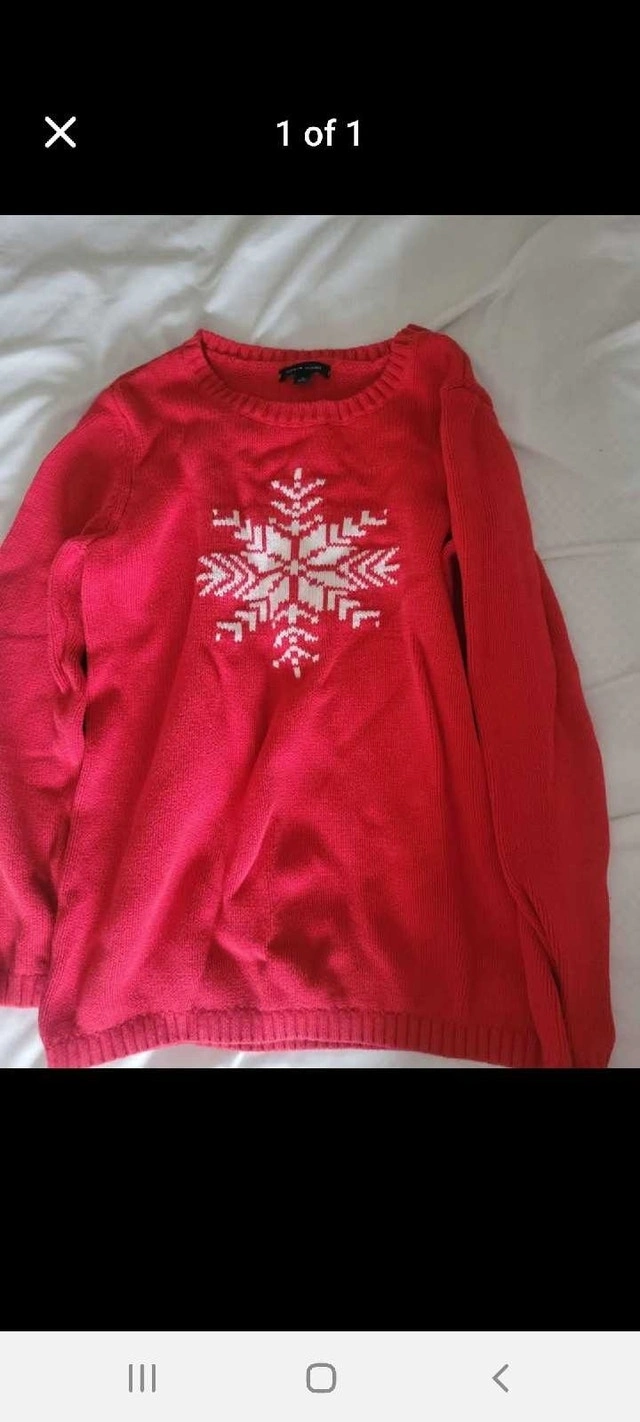 Stay warm and stylish this winter with this festive red snowflake sweater for girls. This cozy sweater features a classic snowflake design, perfect for the holiday season or any chilly day. This sweater is in good condition. Colour: Red with white snowflake. This sweater is waiting for a new home. If the ad's up, it's still available!