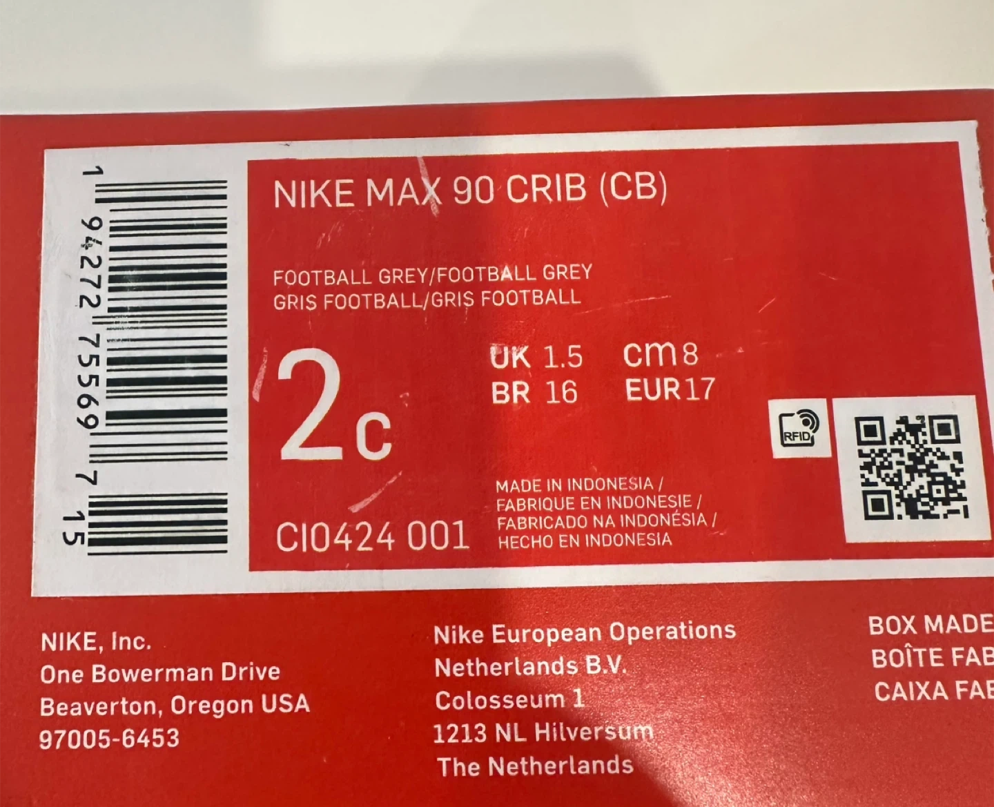 Nike Max 90 Crib (CB) Baby Shoes - Size 2c