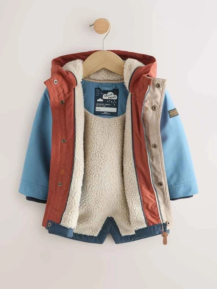 Brand-new! Cosy, stylish and waterproof, this stylish coat has a parka-inspired design with a longer length and a borg fleece lining. A zip fastening leads to the set-in hood, with a popper fastened placket, popper side pockets and a zippered chest pocket, finished with a woven label to the sleeve.