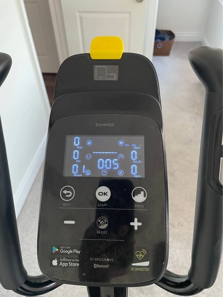 Stay fit at home! This Domyos 520 cross trainer is self-powered, no outlet needed. Ideal for busy people, working professionals, or fitness enthusiasts who want effective cardio without the gym. Stride length: 39 cm (15”) for smooth, natural motion. Low-impact, full-body workout. Reach your fitness goals with the Domyos 520 Black Elliptical! This self-powered trainer features Bluetooth compatibility for tracking your progress and motivating workouts. Get a full body, low-impact workout. Original price 800 CAD. Price 250 CAD only. Well maintained like new and ready to use.