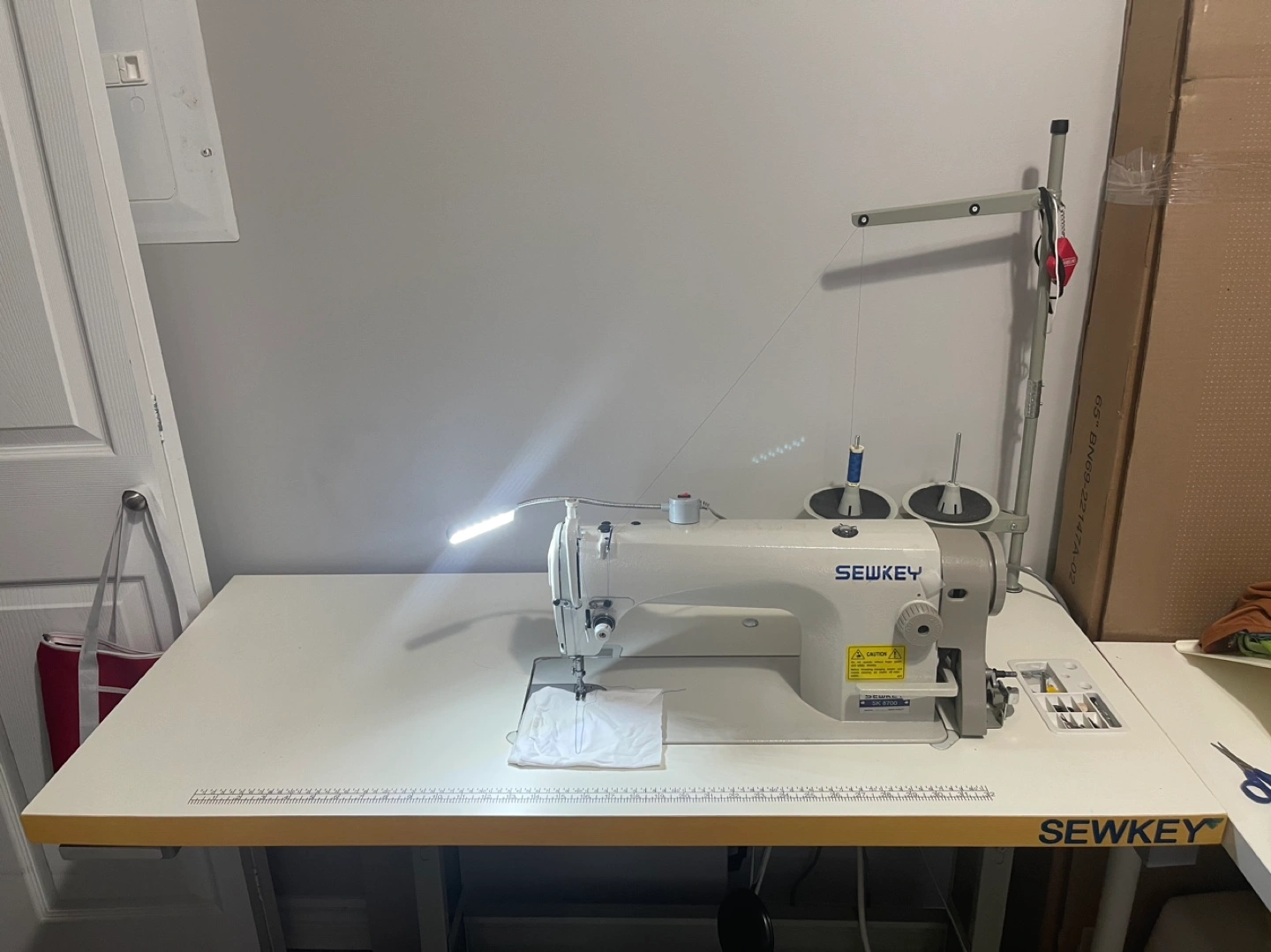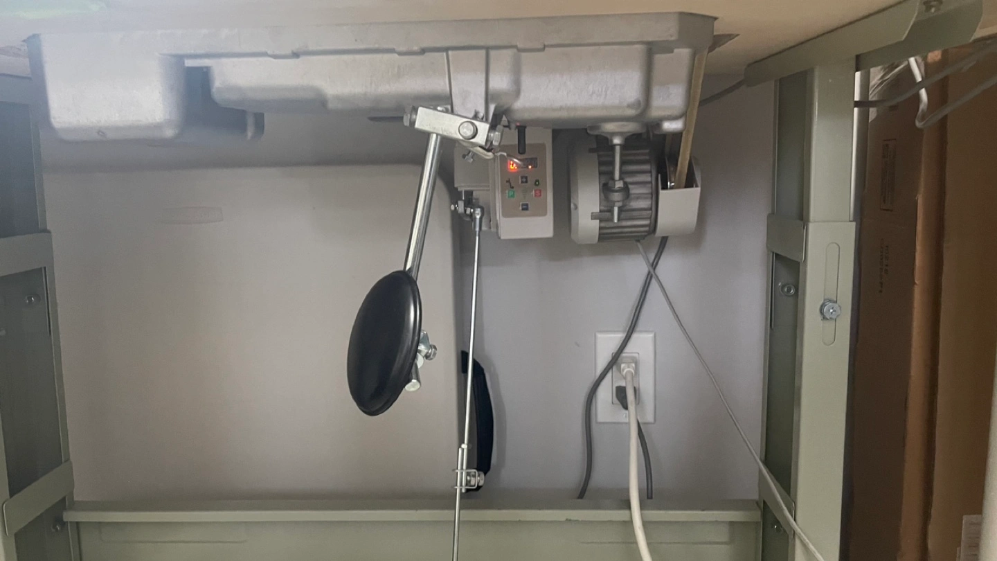 Industrial sewing machine with a table, foot pedal, and light. Comes with a few bobbins and needles. 1 year old barely used. Move out sale, negotiable price.