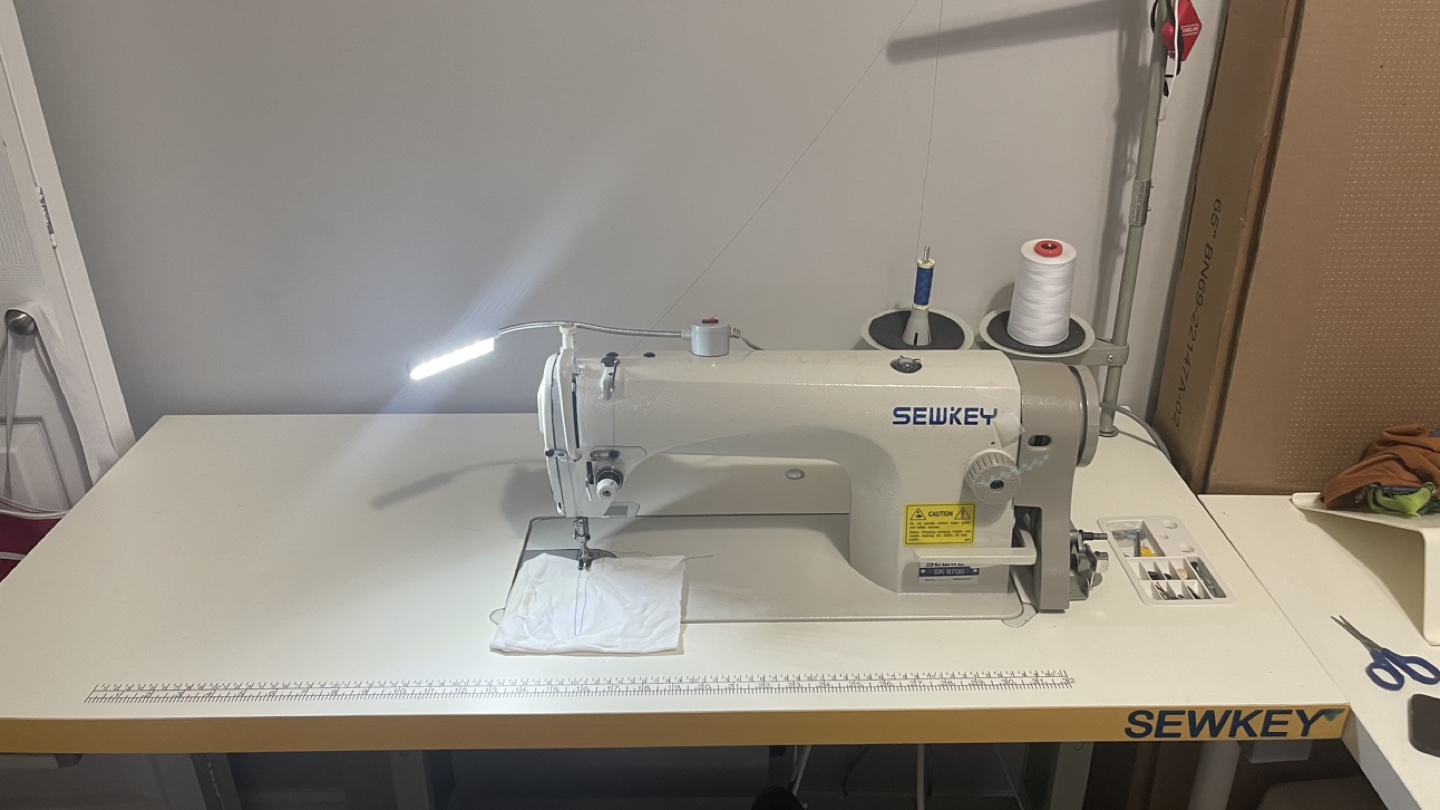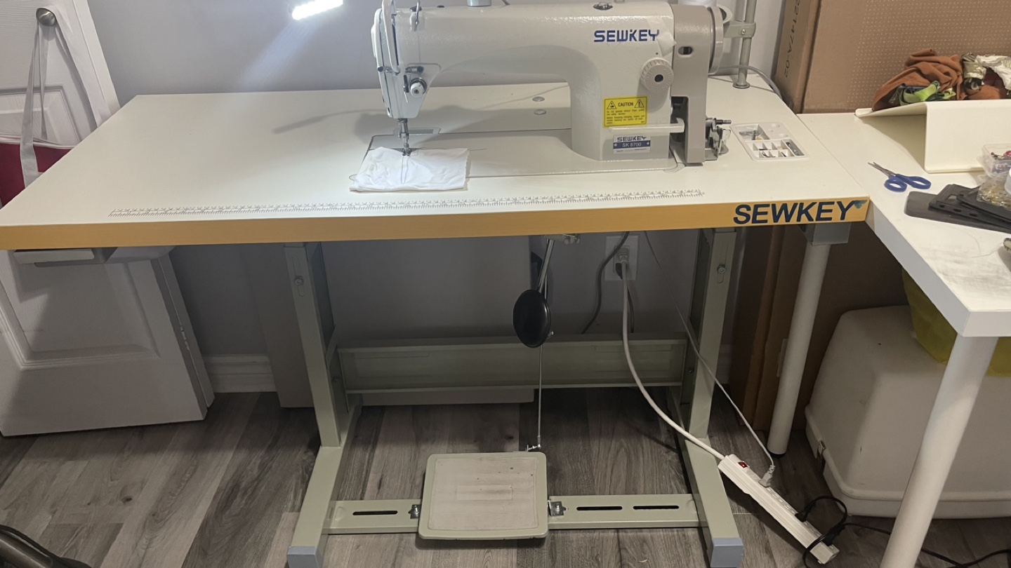 Industrial sewing machine with a table, foot pedal, and light. Comes with a few bobbins and needles. 1 year old barely used. Move out sale, negotiable price.
