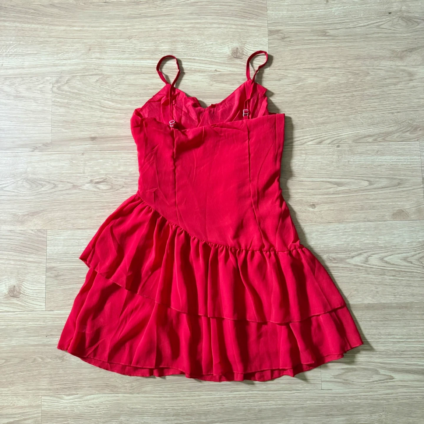 NEW Bright Red Ruffle Layered Spaghetti Strap Dress