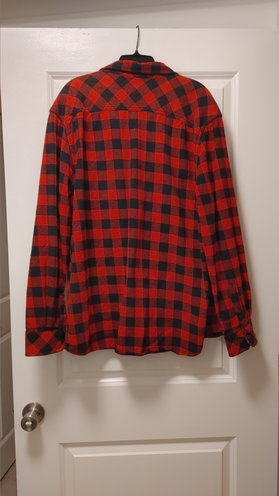 Cozy up in this Canadiana flannel shirt! It features a classic red and black plaid pattern. It's an XL size, perfect for layering or wearing on its own