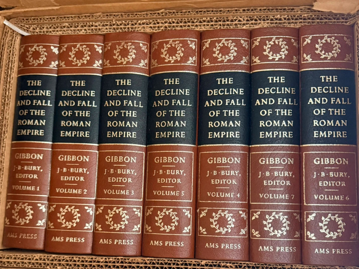 This is a 7 volume set of 'The Decline and Fall of the Roman Empire' by Edward Gibbon. The set is edited by J.B. Bury and published by AMS Press. It includes volumes 1 through 7. This collection is a historical classic.