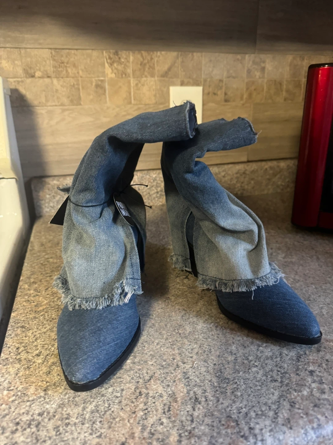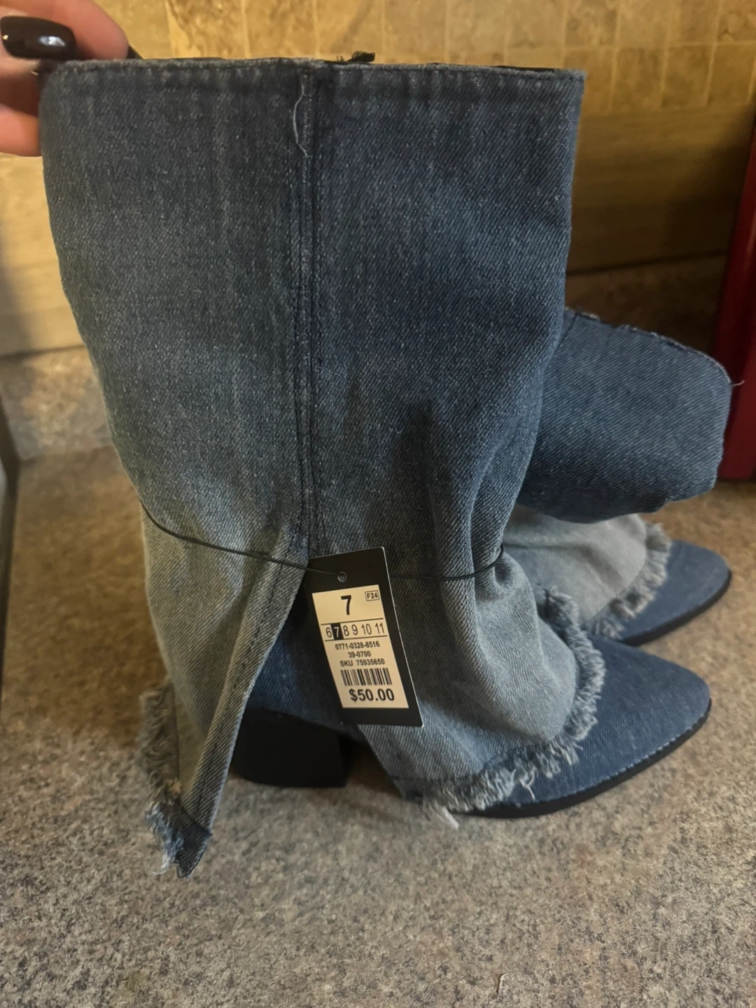 Cute denim booties in size 7! They're in great condition and ready for a new home. The tag shows they were originally $50