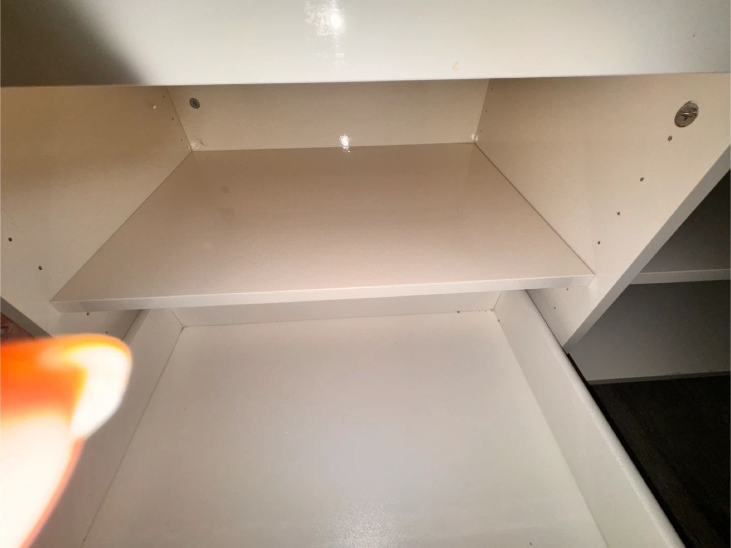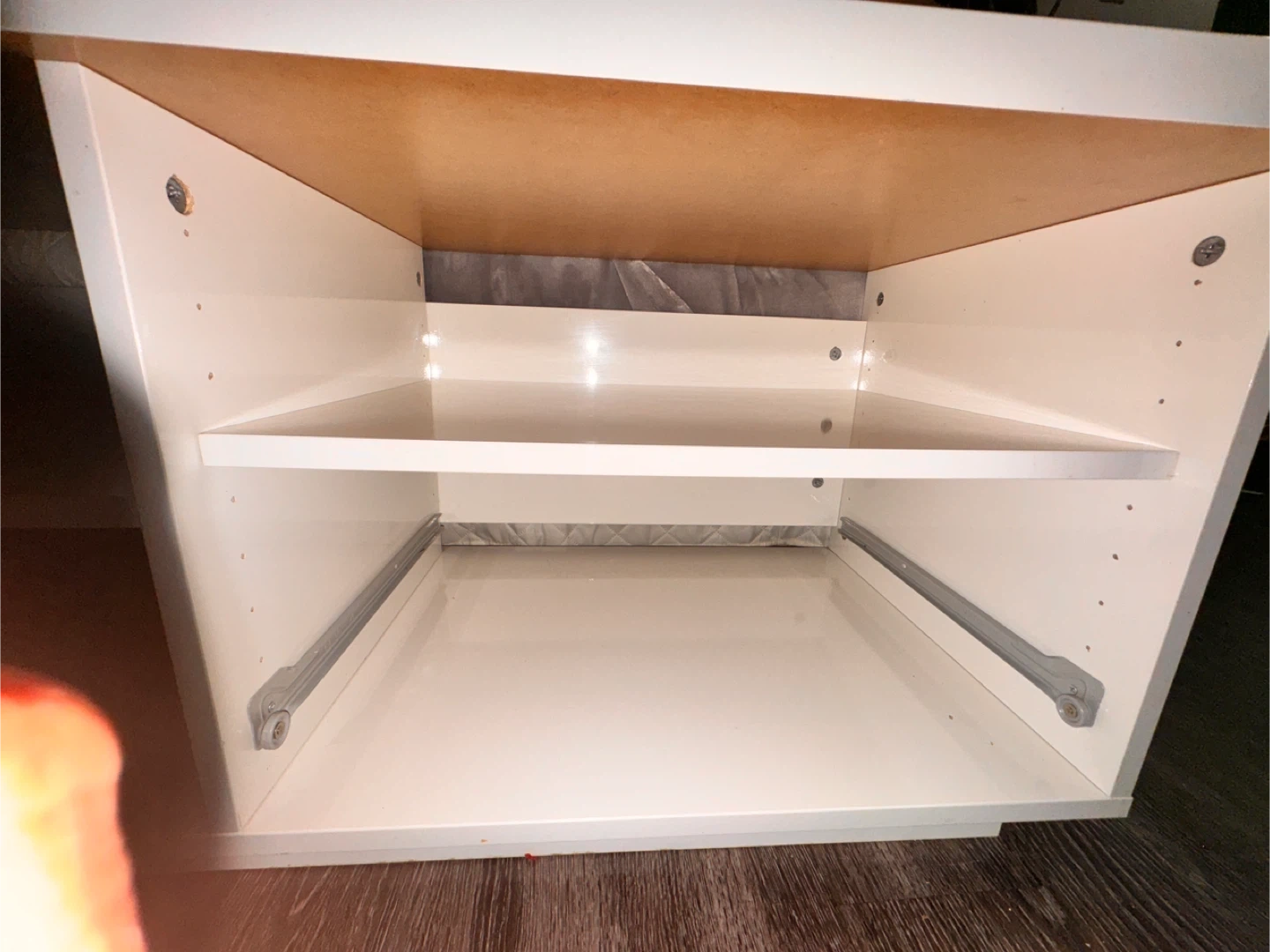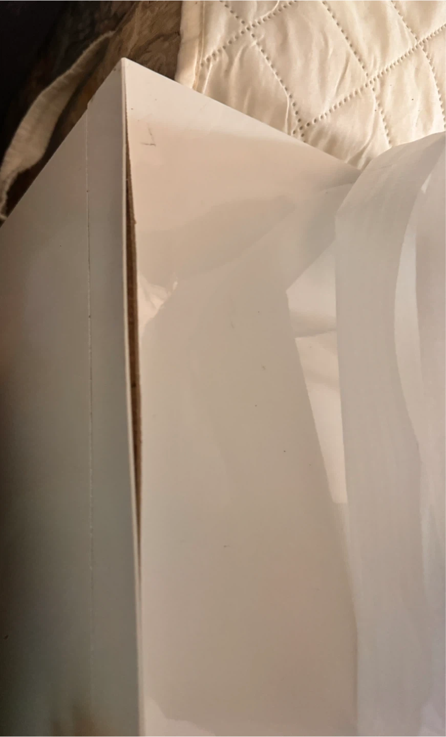 Glossy white IKEA BYÅS TV bench. Has two cabinets with sliding doors and open shelves in the middle. Measures 160x42x45 cm. There's some damage on one of the edges, it’s not visible that much otherwise it’s all clean and good condition, perfectly assembled as you can see on the picture ,a split in the material. Still works great for your TV and media stuff.