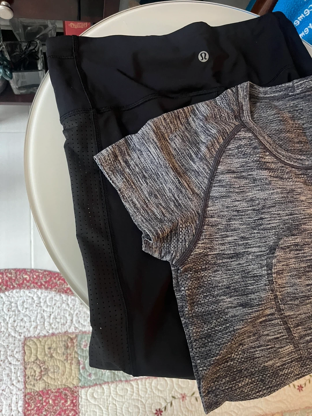 Selling a mix of Lululemon athletic wear in black and grey. Includes leggings and a short-sleeved top. All items are in great condition and ready for your next workout!