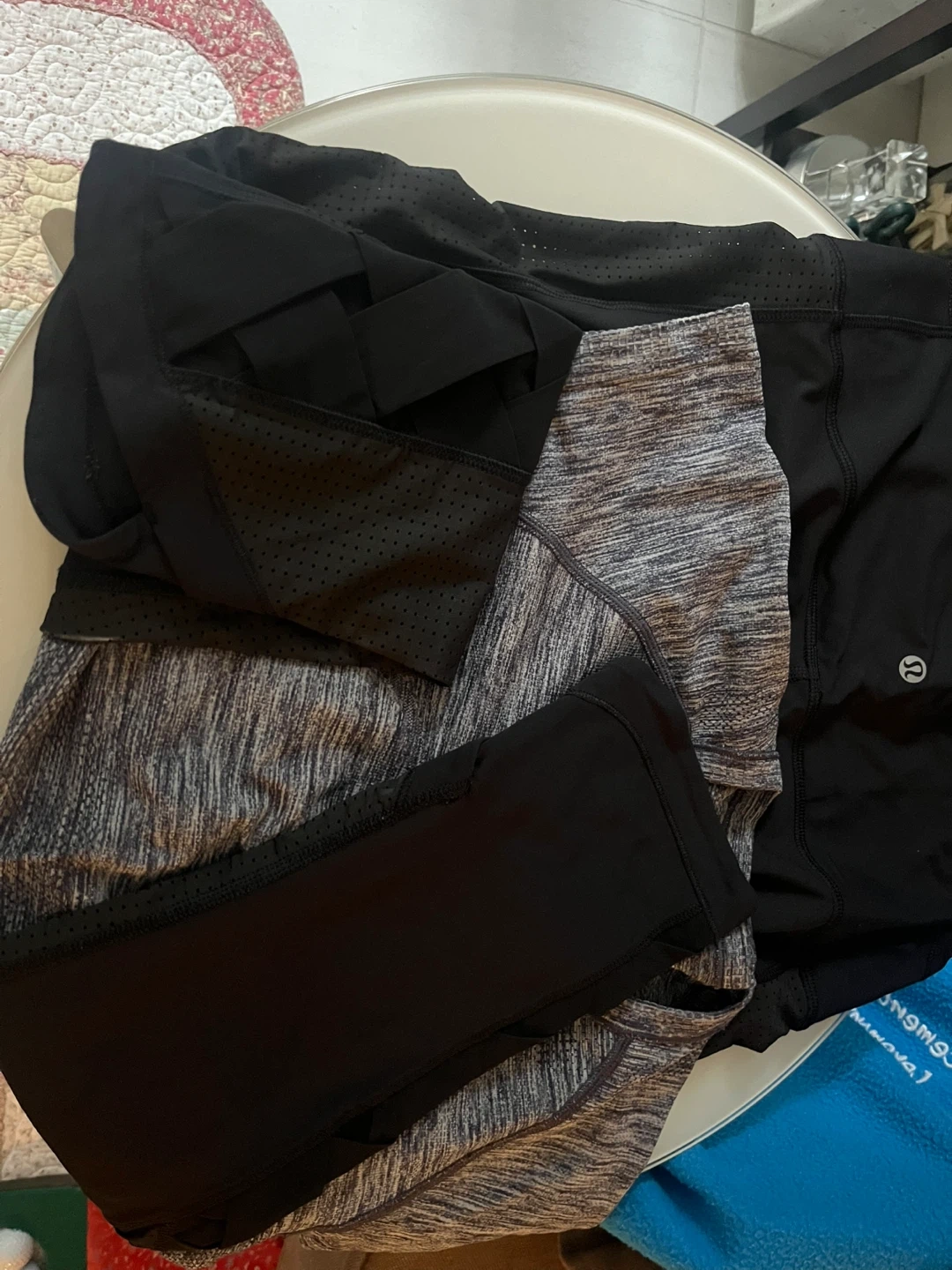 Selling a mix of Lululemon athletic wear in black and grey. Includes leggings and a short-sleeved top. All items are in great condition and ready for your next workout!