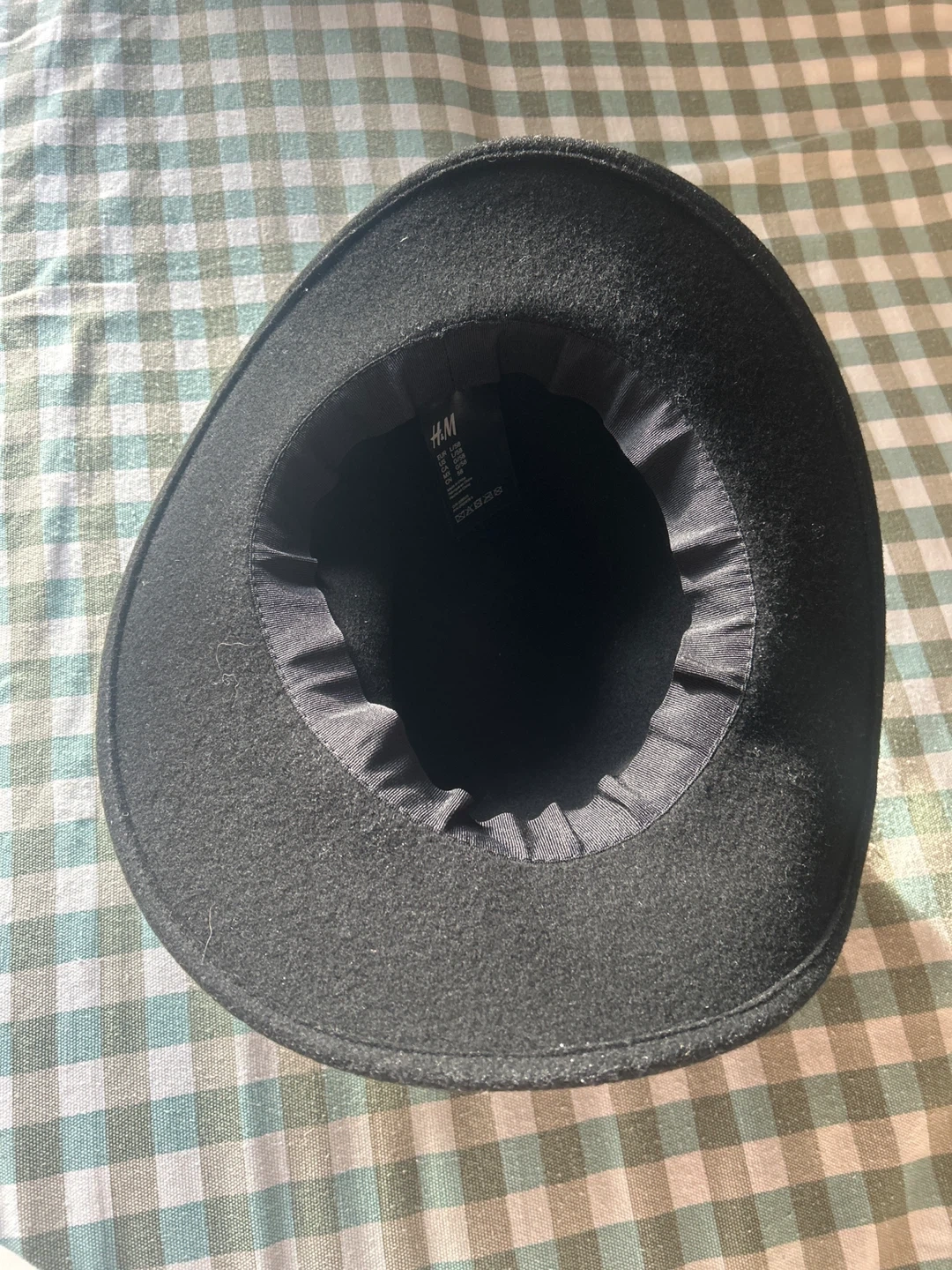 This is an H&M black fedora hat. Size is L/58. It’s a basically new hat but has been washed once after I purchased it. I don’t have outfits to match for it so I didn’t wear it. Originally got it like 30+ dollars now it’s only 5.