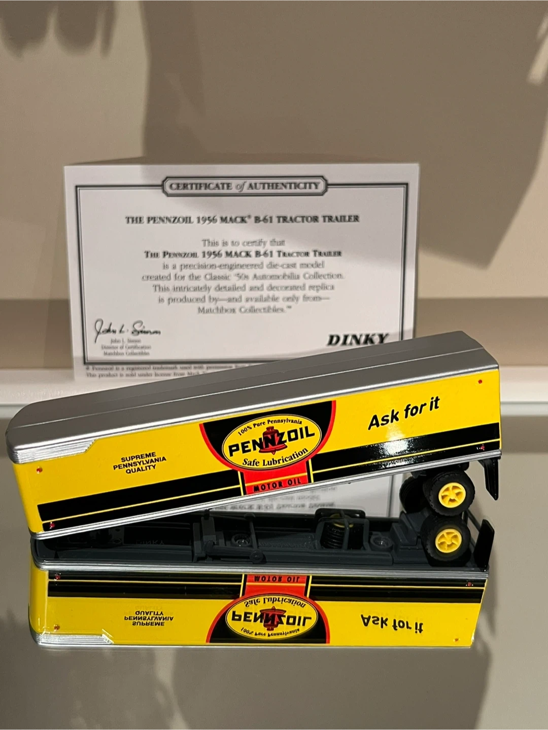 Dinky Pennzoil Mack Yellow Black Silver Die Cast Model Trailer π