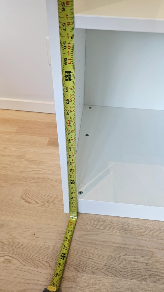It measures approximately 23.5 inches wide, 22 inches deep, and 86 inches tall.
